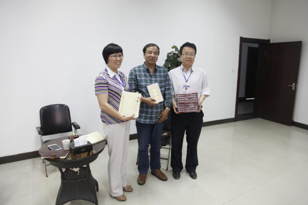 陜西著名文化學(xué)者、作家石崗(圖中)向我校圖書館贈書