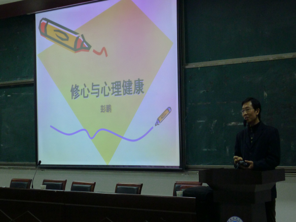 西北大學(xué)哲學(xué)與社會學(xué)學(xué)院副教授彭鵬作“修心與心理健康”講座