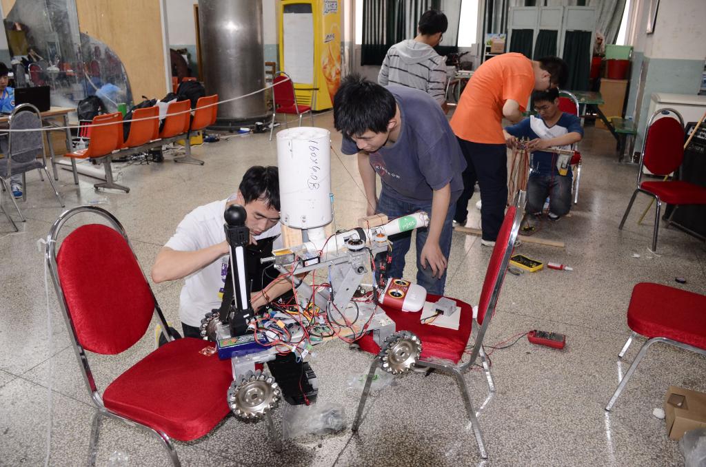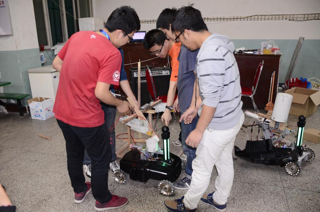 我校從2014年12月起開始大賽備戰(zhàn),由校團委牽頭組織,并配備了專門的試驗場地和活動資金,電氣與信息工程學院組織遴選,確定周強、郭文強、蔡陳赟3位指導老師帶領(lǐng)徐啟超、董晨宇等12名學生組成的“科大戰(zhàn)警隊”作為我校代表隊參賽。他們經(jīng)過緊張艱苦的籌備和反復試驗,設(shè)計制作的機器人戰(zhàn)隊順利通過了大賽2015年3月至5月期間進行的三輪專家考核和篩選,最終成功殺入西北賽區(qū)決賽。