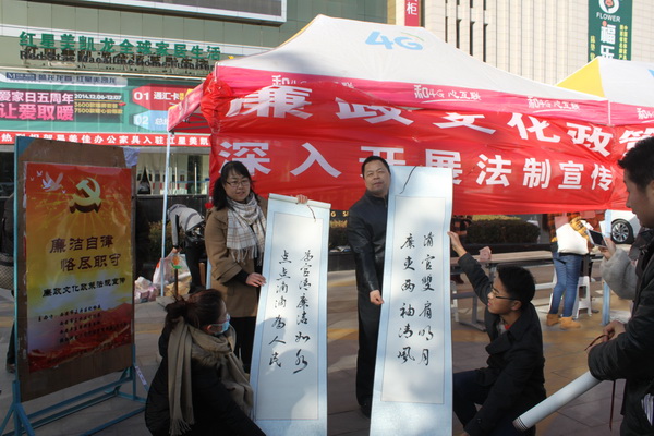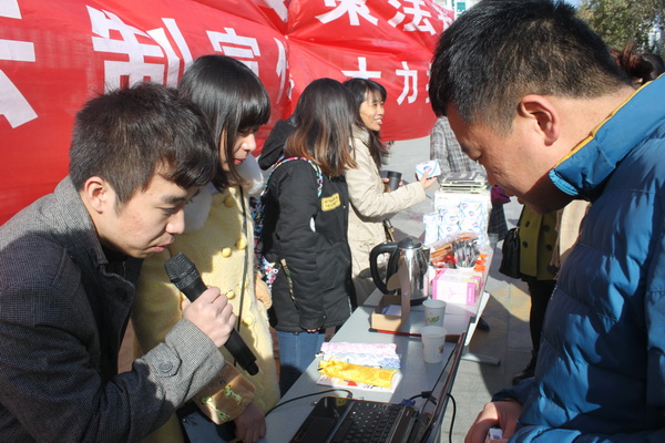 在我國(guó)第一個(gè)“憲法日”來(lái)臨之際,為全面貫徹落實(shí)十八屆四中全會(huì)精神,增強(qiáng)全民法治觀念,強(qiáng)化反腐倡廉意識(shí),推進(jìn)法治社會(huì)建設(shè),由西安市未央?yún)^(qū)紀(jì)委、司法局主辦,我校管理學(xué)院團(tuán)委與法學(xué)系及陜西豐東律師事務(wù)所承辦的12·4“憲法日”公益法制宣傳活動(dòng)在未央?yún)^(qū)龍首村紅星美凱龍廣場(chǎng)舉行。
