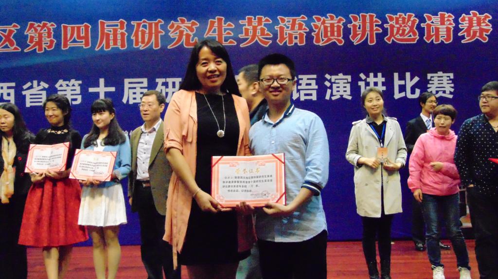 本屆獲獎(jiǎng)是繼2009年07級(jí)研究生黃龍?jiān)圃谖鞅钡貐^(qū)(非英語(yǔ)專業(yè))研究生英語(yǔ)演講邀請(qǐng)賽暨陜西省第七屆(非英語(yǔ)專業(yè))研究生英語(yǔ)演講比賽奪得三等獎(jiǎng)之后,我校再次在此項(xiàng)賽事活動(dòng)中取得好成績(jī)。