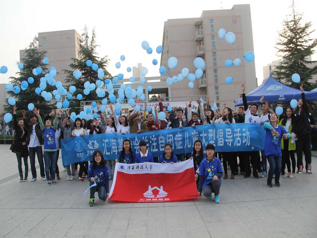 在校外,匯?;饡苎麉⑴c由壹基金主辦的“藍色行動——人人都是笨小孩”馬拉松慢跑,以世界自閉癥日為載體,以市民參與、共同關(guān)注自閉癥為目標,通過一場環(huán)繞西安市興慶公園的馬拉松慢跑為自閉癥患者加油打氣。