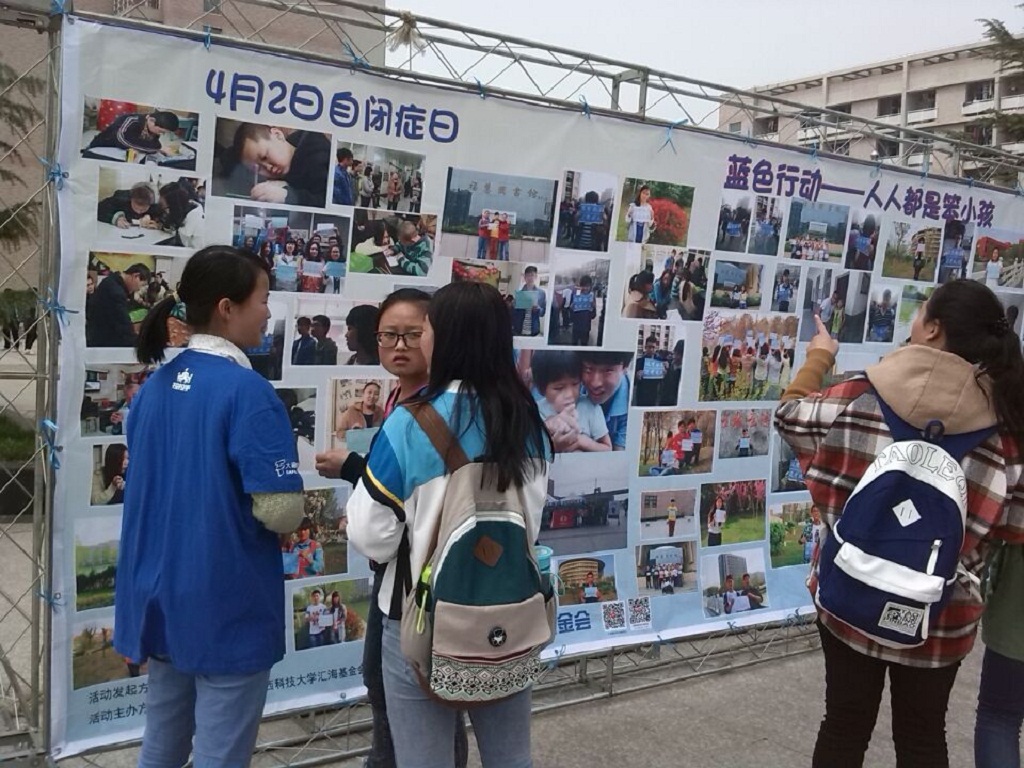 4月2日,“人人都是笨小孩——2015年自閉癥日藍色行動”正在全國范圍內(nèi)開展。當天,我校電氣與信息工程學院指導的社團“匯?;饡币矠槲覀凕c“藍”了校園,以此向呼吁對待自閉癥患者:沒有標簽,沒有歧視。