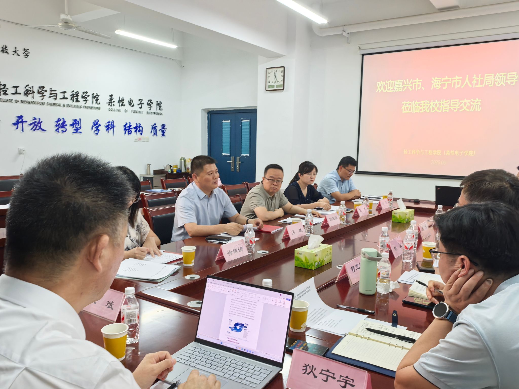 6月5日上午,嘉興市人力社保局四級調(diào)研員周樂、嘉興市人力社保局人才開發(fā)處專技處處長趙旻、嘉興市人力社保局專技處副處長張飛龍、海寧市人力社保局副局長曹立健、海寧市人力社保局專技科科長金毅、東南大學(xué)化學(xué)化工學(xué)院焦真副教授、浙江博菲電氣股份有限公司副總經(jīng)理正高級工程師狄寧宇、浙江博菲電氣股份有限公司監(jiān)事會主席高級工程師凌斌等蒞臨我校輕工科學(xué)與工程學(xué)院,開展博士后工作交流。學(xué)院院長呂斌、副院長劉國棟及相關(guān)系主任參加會議,會議由劉國棟教授主持。