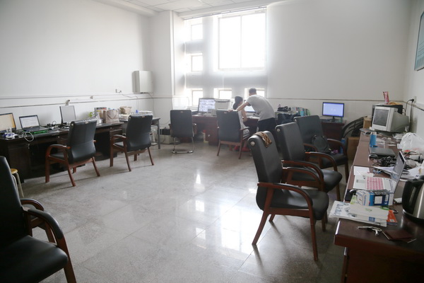來到監(jiān)控室大廳,雖然開著空調(diào),但是處于樓頂?shù)奈恢萌匀皇惯@里“熱力逼人”,更別提冬天的“高處不勝寒”了。就是在這樣的環(huán)境里,電類和能源專業(yè)的3位導(dǎo)師和10多名研究生們默默地一邊守護著發(fā)電設(shè)備,一邊做著學問和研究。