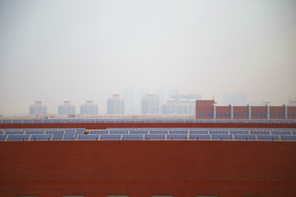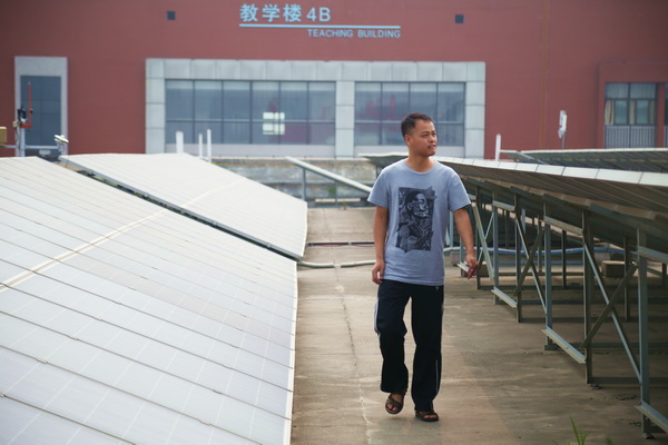 到了晌午太陽正烈的時候,種馬剛卻 “習慣”性地走出監(jiān)控室,來到門外的天臺上,開始對架設(shè)在此的一列列太陽能電池板進行巡視,查看是否有破損或者臟污。從一號教學樓A座到F座,1萬多平方米的樓頂上共有3640片太陽能電池板,即使不是每次都會全部走遍,但在艷陽炙烤之下、周身環(huán)伺發(fā)燙的電池面板,這樣一趟走下來并不算輕松。