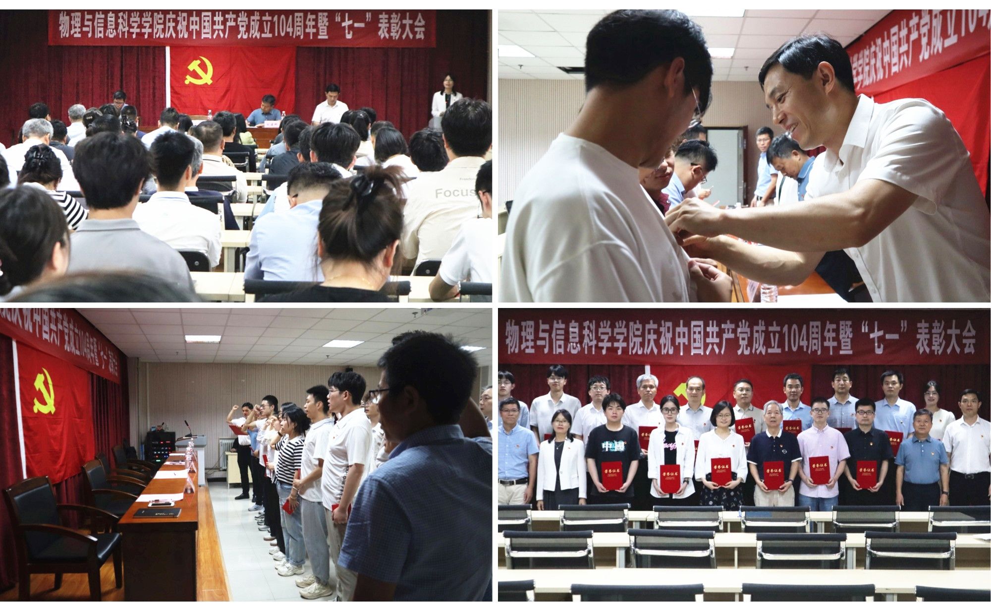 為慶祝中國(guó)共產(chǎn)黨成立104周年,表彰先進(jìn),樹立典型,物理學(xué)院黨委于6月30日舉行慶祝中國(guó)共產(chǎn)黨成立104周年暨“七一”表彰大會(huì)。學(xué)院黨委委員、全體黨員、入黨積極分子代表參加會(huì)議,會(huì)議由學(xué)院黨委副書記王曉明主持。