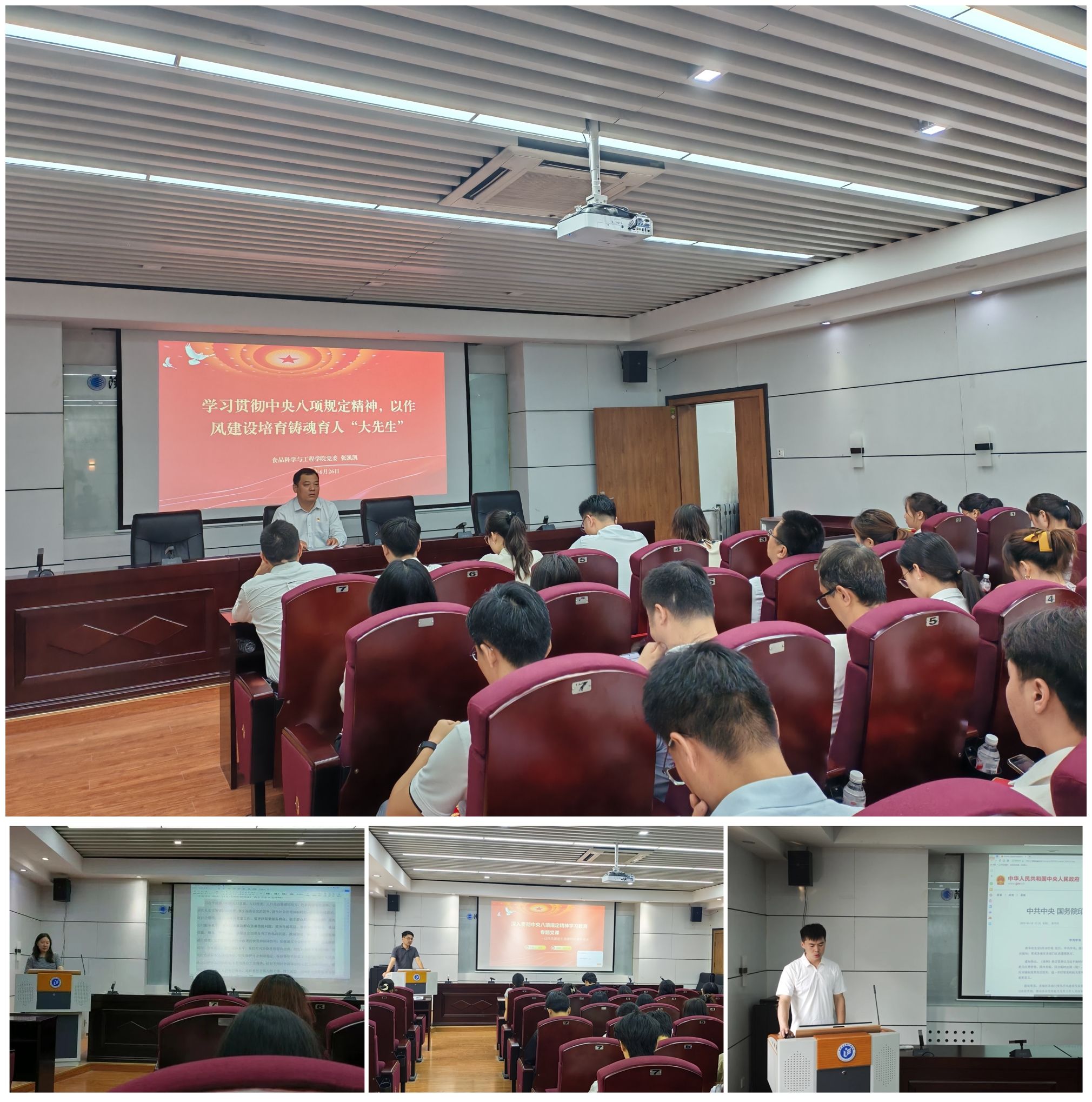 七一前夕,學(xué)院領(lǐng)導(dǎo)班子和各師生黨支部書(shū)記分別講授深入貫徹中央八項(xiàng)規(guī)定精神學(xué)習(xí)教育專(zhuān)題黨課。學(xué)院黨委書(shū)記張凱凱以《深入學(xué)習(xí)貫徹中央八項(xiàng)規(guī)定精神,以作風(fēng)建設(shè)培育鑄魂育人“大先生”》為題進(jìn)行授課,系統(tǒng)闡釋了教育領(lǐng)域踐行中央八項(xiàng)規(guī)定精神的重要意義。學(xué)院黨委委員、各師生黨支部書(shū)記圍繞深入貫徹中央八項(xiàng)規(guī)定精神學(xué)習(xí)教育心得體會(huì),結(jié)合分管領(lǐng)域工作及支部特點(diǎn)講授專(zhuān)題黨課,持續(xù)推動(dòng)中央八項(xiàng)規(guī)定精神在食品學(xué)院落地見(jiàn)效.