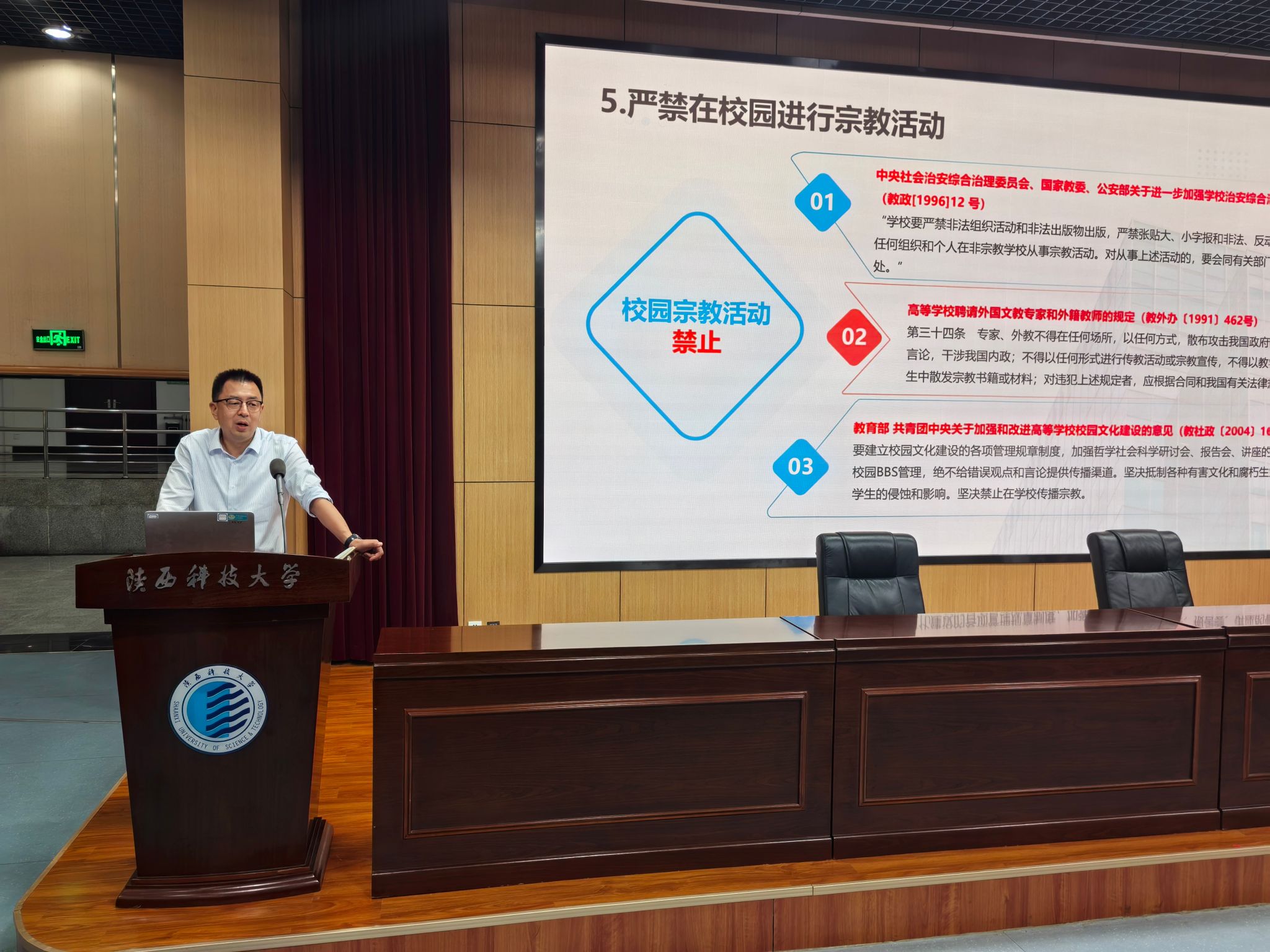 講座尾聲,院黨委書記喬明哲結(jié)合黨委教師工作部編撰的《師德師風(fēng)建設(shè)遵循及負(fù)面典型案例警示教育》、黨委統(tǒng)戰(zhàn)部《宗教政策法律法規(guī)》等文件,就師德師風(fēng)、意識形態(tài)及安全穩(wěn)定領(lǐng)域開展警示教育,強(qiáng)調(diào)須堅(jiān)守紅線意識與底線思維,全面提升師德涵養(yǎng)。他提出學(xué)院將健全師德師風(fēng)建設(shè)常態(tài)化、長效化機(jī)制,通過專題培訓(xùn)、評優(yōu)樹先等形式,營造崇德尚美的育人氛圍,激勵(lì)全體教師傳承“三實(shí)作風(fēng)”,恪守立德樹人初心,踐行“為黨育人、為國育才”使命。