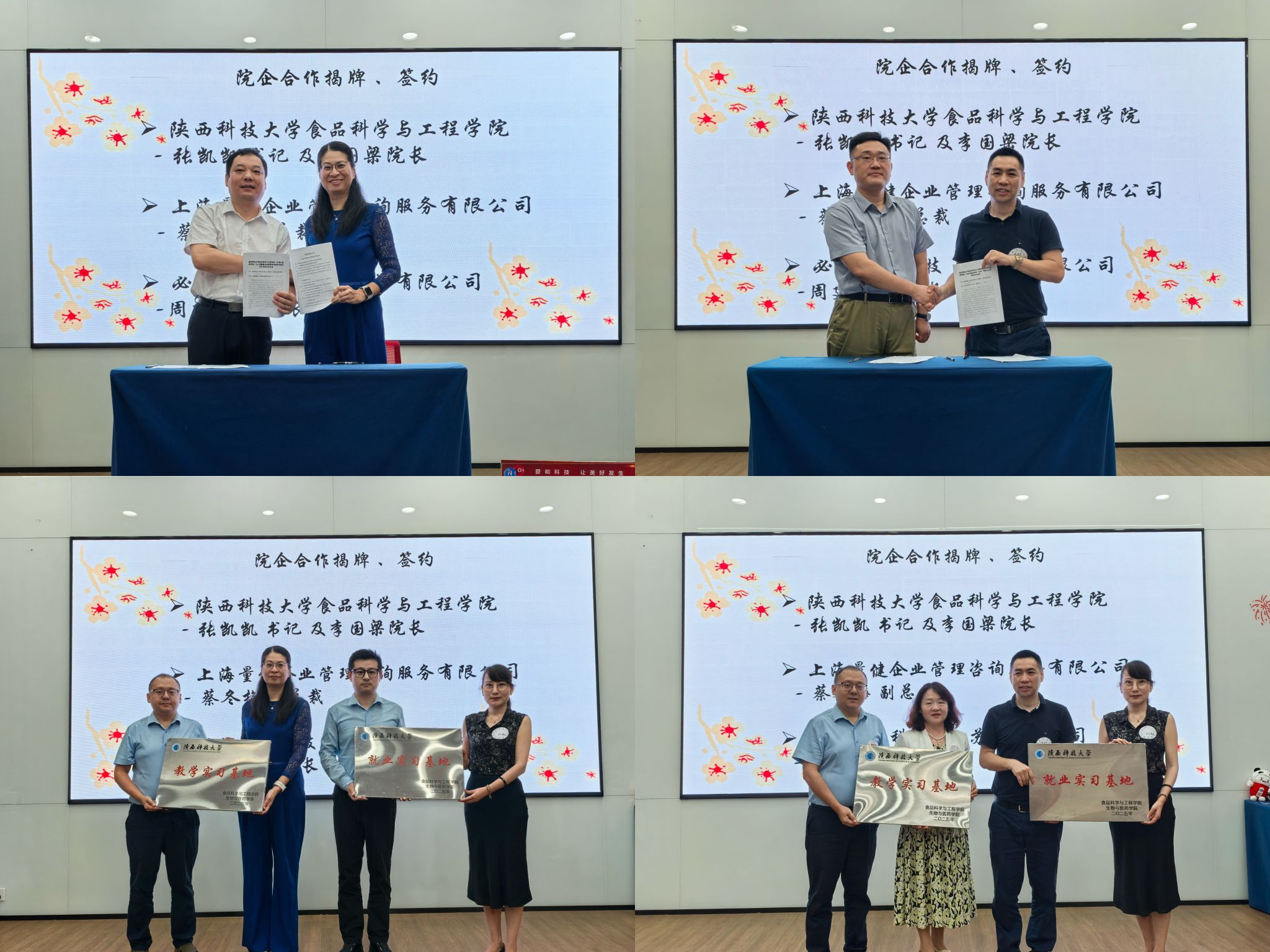 會(huì)議期間,食品學(xué)院與上海量健企業(yè)管理咨詢服務(wù)有限公司、必優(yōu)食品科技(江蘇)有限公司舉行了院企合作簽約及授牌儀式,就共建高水平科研平臺(tái)、攜手校企聯(lián)合人才培養(yǎng)、暢通成果轉(zhuǎn)化機(jī)制等建立深度合作關(guān)系。