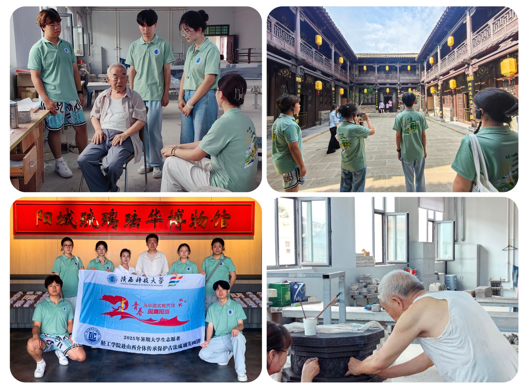 “琉光溢彩,晉韻新生”實(shí)踐團(tuán)以山西晉城、介休古法琉璃及傳承人為調(diào)研對(duì)象,開(kāi)啟文化探尋之旅。隊(duì)員走訪皇城相府、博物館、非遺工作室等地,溯源琉璃歷史;與國(guó)家級(jí)非遺大師訪談,探尋傳承方向,還以鏡頭記錄琉璃制坯到燒制全過(guò)程。后續(xù)團(tuán)隊(duì)將返校,通過(guò)設(shè)計(jì)文創(chuàng)、整理訪談、剪輯影像等,創(chuàng)新推廣琉璃非遺,激勵(lì)青年投身傳承。