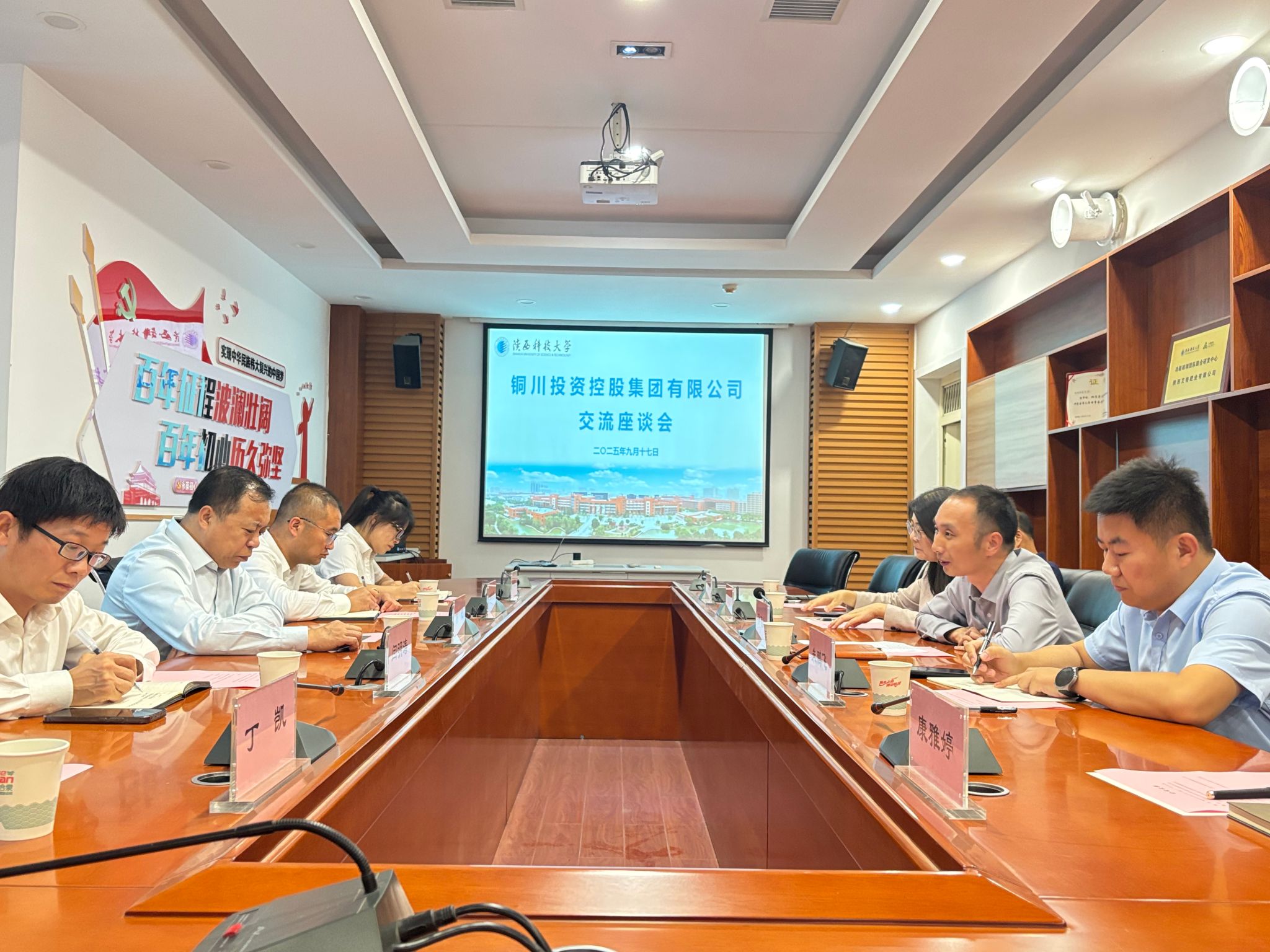 為深入貫徹學(xué)校“一院多市”“多院一市”戰(zhàn)略部署,持續(xù)推進(jìn)服務(wù)社會創(chuàng)優(yōu)行動,深化產(chǎn)學(xué)研協(xié)同創(chuàng)新,9月17日下午,銅川投資控股集團(tuán)有限公司董事長楊光一行5人來陜西科技大學(xué)訪問,圍繞科技成果轉(zhuǎn)化與產(chǎn)業(yè)對接等議題進(jìn)行座談交流。材料科學(xué)與工程學(xué)院副院長伍媛婷、環(huán)境科學(xué)與工程學(xué)院、食品科學(xué)與工程學(xué)院相關(guān)專家及前沿科學(xué)與技術(shù)轉(zhuǎn)移研究院相關(guān)科室負(fù)責(zé)人參加座談。會議由前沿院副院長李志如主持。