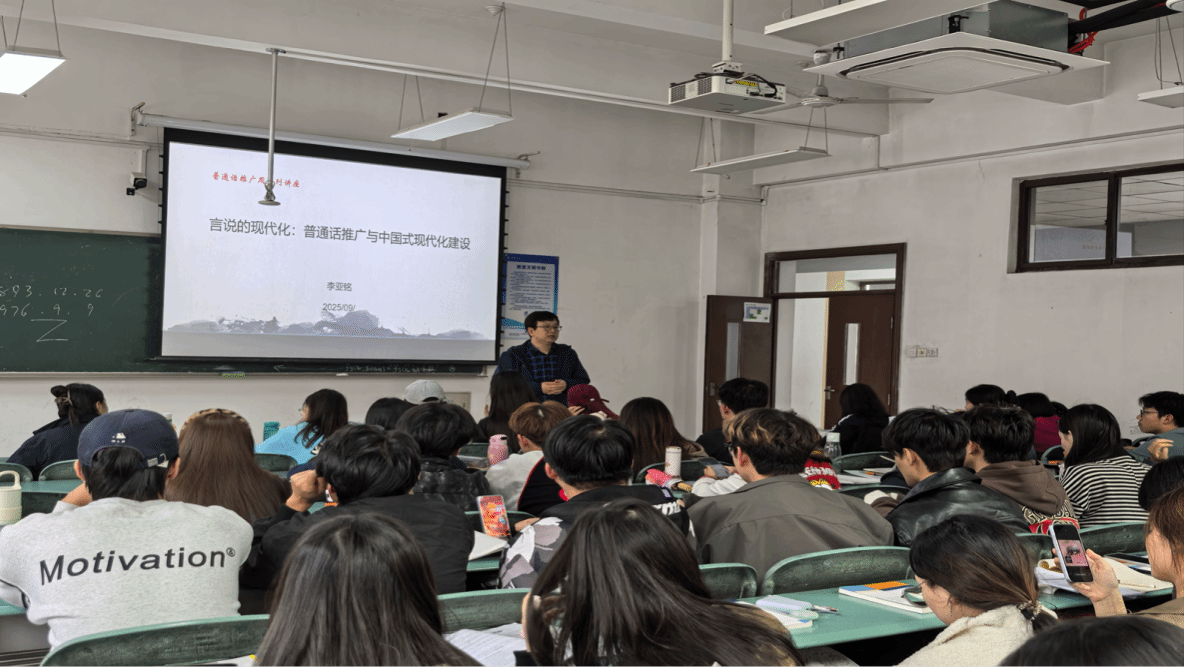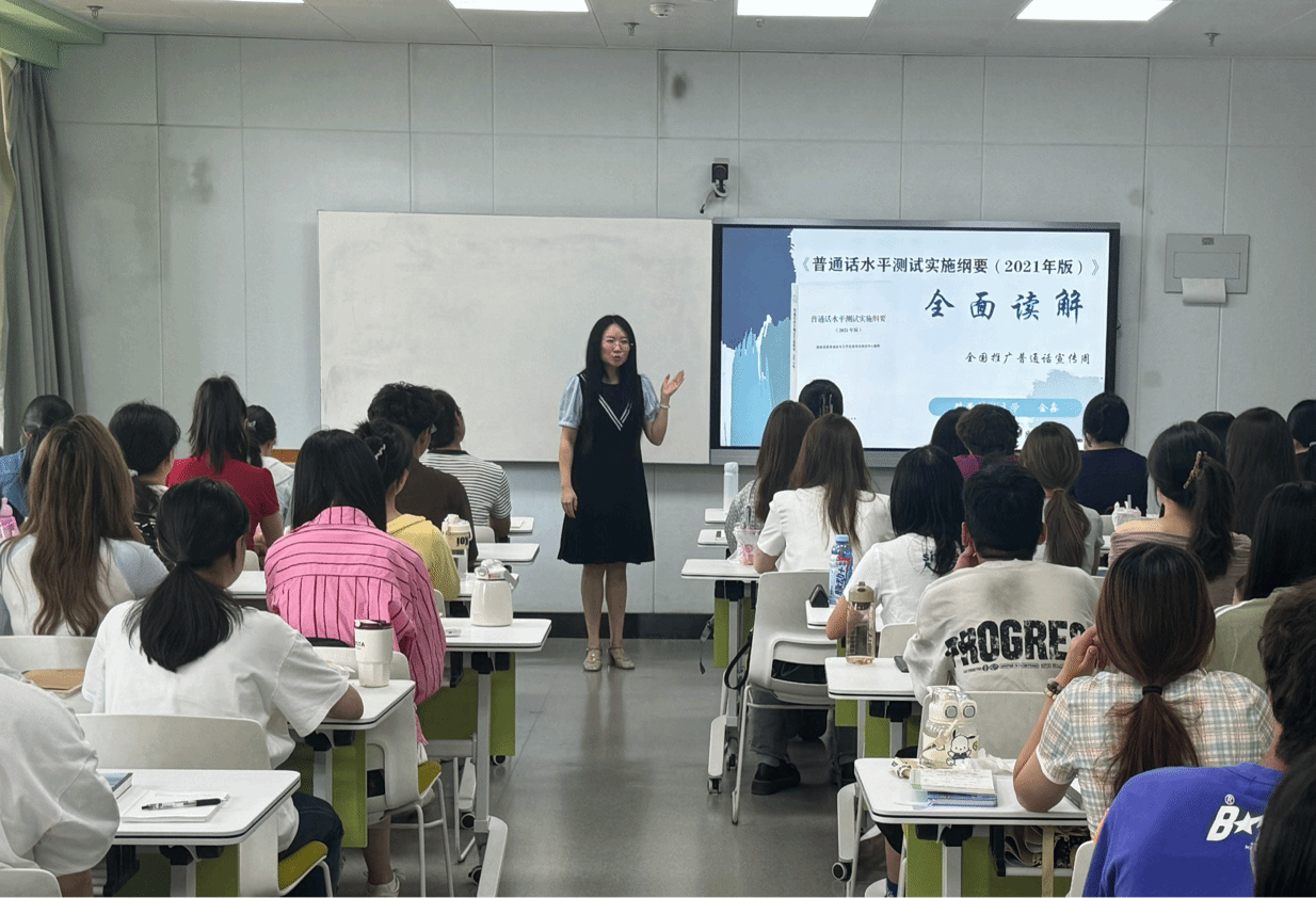 校內(nèi)活動百花齊放,涌現(xiàn)推普潮。舉辦《言說的現(xiàn)代化:普通話推廣與中國式現(xiàn)代化建設》《普通話水平測試實施綱要讀解》專題講座;為民族生定制《說好普通話,融入新校園》主題報告,助力民族學子快速適應校園生活。中華經(jīng)典誦寫講基地舉辦了“推廣普通話,傳承抗戰(zhàn)精神”主題朗誦會,在宣傳推廣普通話和朗誦藝術(shù)的同時,進一步提升學生規(guī)范用語意識和社會責任感。校團委以“青春為中國式現(xiàn)代化挺膺擔當”為主題,組織開展了“聲誦中國”經(jīng)典作品誦讀活動。普通話測試站緊扣推普周主題,組織師生以規(guī)范用語講述反法西斯斗爭故事,通過生動敘事傳承紅色基因,同步多渠道宣傳發(fā)動,吸引超千名師生報名普通話水平測試,實現(xiàn)“以測促學、以學促用”。