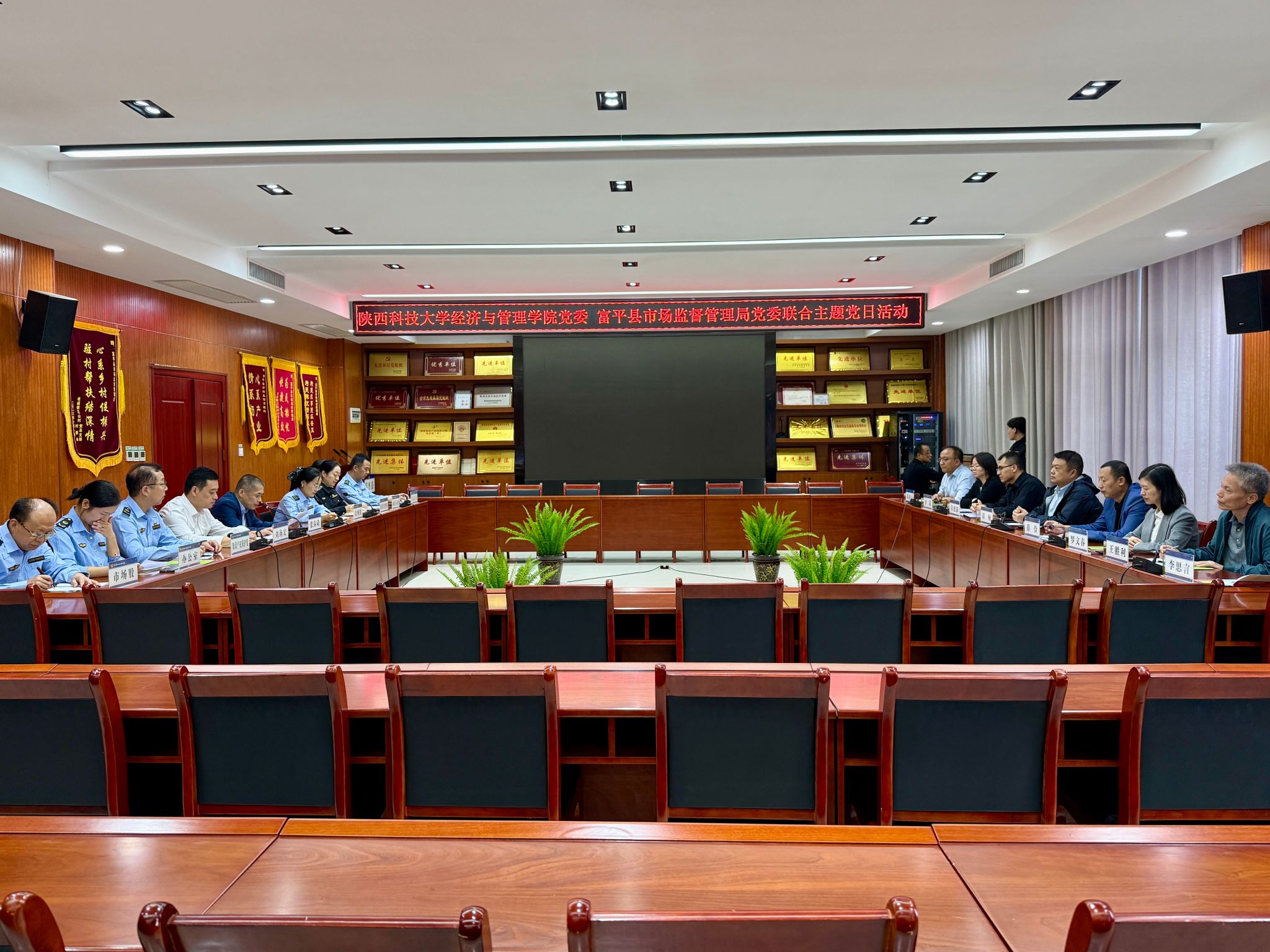 9月26日,經(jīng)管學院黨委與渭南市富平縣市場監(jiān)督管理局黨委聯(lián)合開展主題黨日活動。富平縣市場監(jiān)督管理局黨委書記、局長張春琦,副局長劉海宏,經(jīng)管學院黨委書記崔楠,院長薛儉,各系主任、科研平臺負責人及黨政辦公室主任等參加活動。