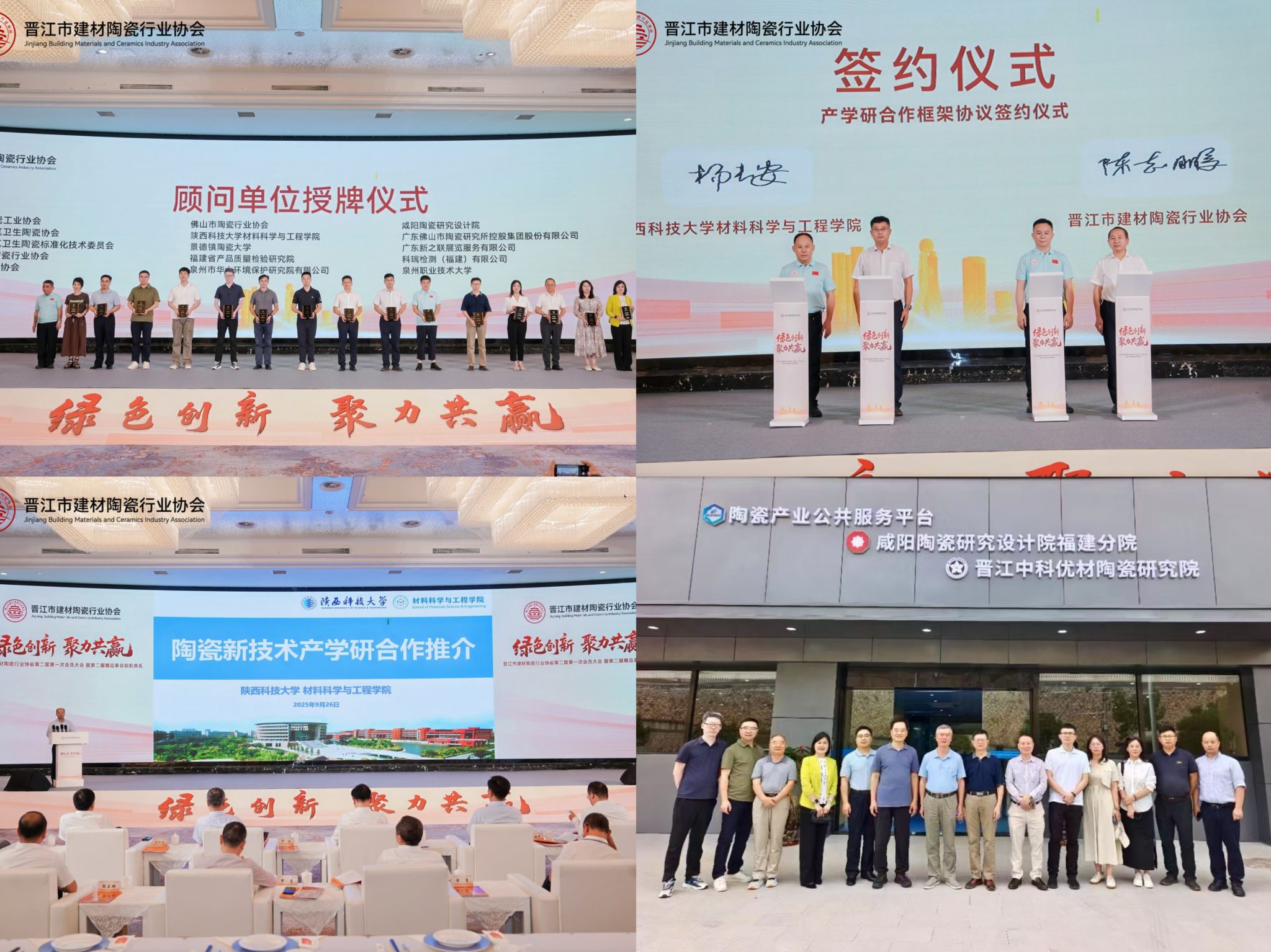 會上,材料學(xué)院黨委書記楊長安與晉江市建材陶瓷行業(yè)協(xié)會簽署產(chǎn)學(xué)研合作框架協(xié)議;副院長歐陽海波介紹了材料學(xué)院的學(xué)科特色與優(yōu)勢,重點推介了大尺寸陶瓷薄板強韌化技術(shù)、陶瓷釉面裝飾-功能一體化技術(shù)等11項科技成果。