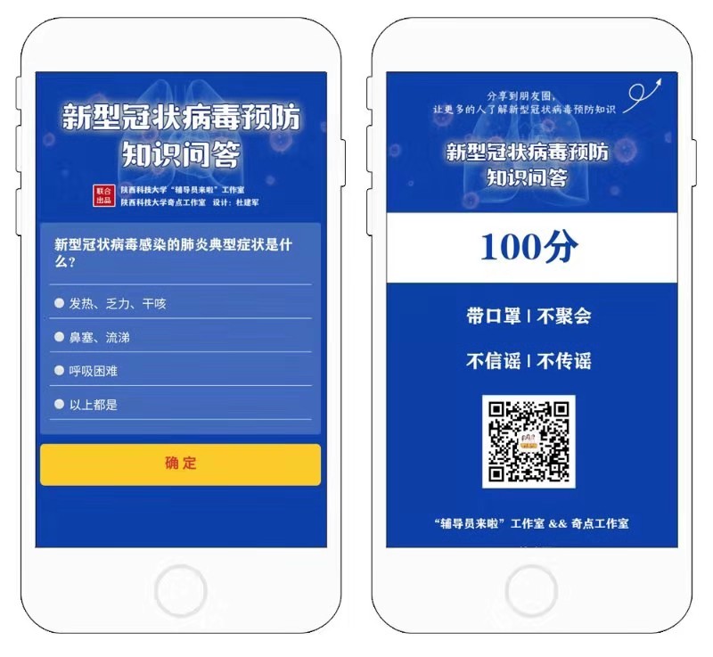 校黨委書記在第三次疫情防控工作專題會議強調(diào),要加強信息發(fā)布,做好校園輿情應(yīng)對工作,加強對師生的教育引導(dǎo)。學(xué)校利用官方網(wǎng)站、微博、微信公眾號、各級工作群等發(fā)布疫情防控知識普及、致全體師生和學(xué)生家長的倡議書,及時向師生員工和學(xué)生家長宣傳普及疫情防治知識和防控要求,引導(dǎo)大家加強自我防護、積極面對疫情,齊心協(xié)力做好疫情防控工作。1月22日起,《今天,你戴口罩了么?》《陜西科技大學(xué)新型冠狀病毒感染的肺炎防控倡議書》《我是陜科大人,我承諾:》《關(guān)于新型冠狀病毒肺炎,你必須要知道的事實》等圖文宣傳在校園媒體矩陣不斷發(fā)布;2月1日,設(shè)置“中央精神”“科大要聞”“通知公告”“防控知識”等欄目的陜科大新型冠狀病毒感染的肺炎防控專題網(wǎng)站正式上線,與此同時,學(xué)工部易班中心、學(xué)工部官方微信公眾號推出《輔導(dǎo)員傳你病毒不侵大法》《這個假期,我承諾》《袍澤同行,必勝疫情》等多篇網(wǎng)文,呼吁和倡導(dǎo)全校師生員工主動投身疫情防疫戰(zhàn),充分發(fā)揮了強有力的正面引導(dǎo)作用。