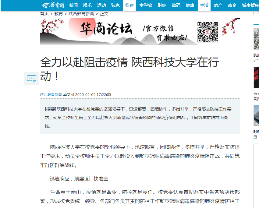 華商網(wǎng):全力以赴阻擊疫情 陜西科技大學(xué)在行動!
