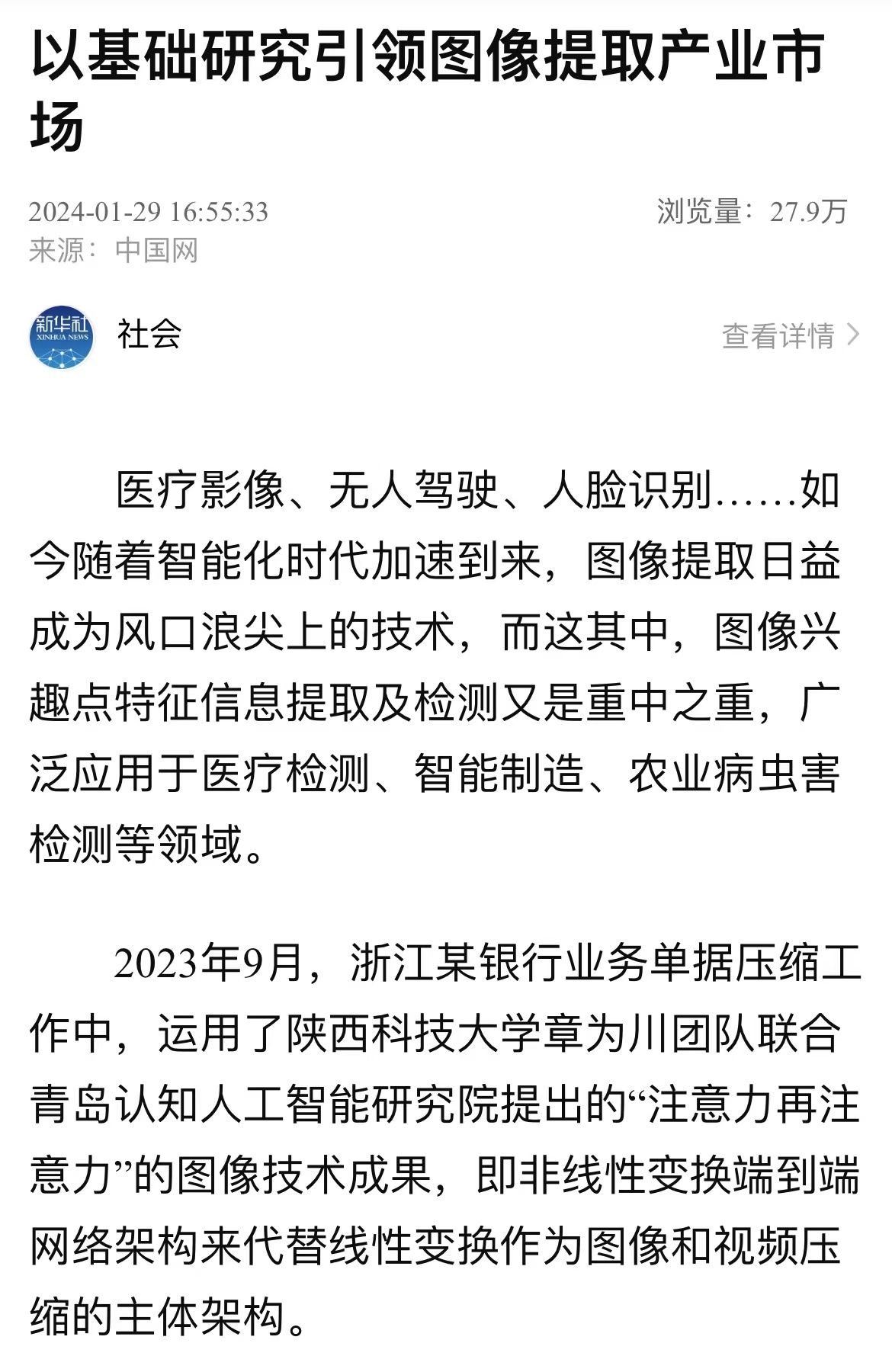 近日,新華社報道我校以基礎(chǔ)研究引領(lǐng)圖像提取產(chǎn)業(yè)市場