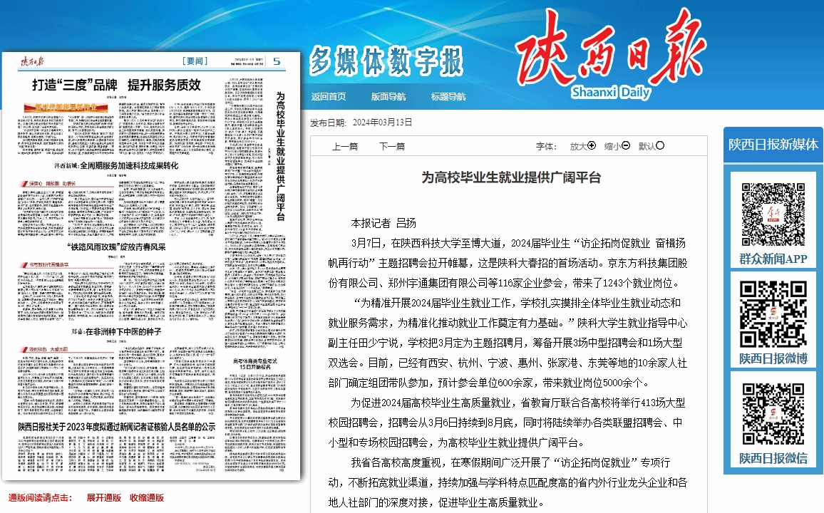 《陜西日報》:為高校畢業(yè)生就業(yè)提供廣闊平臺