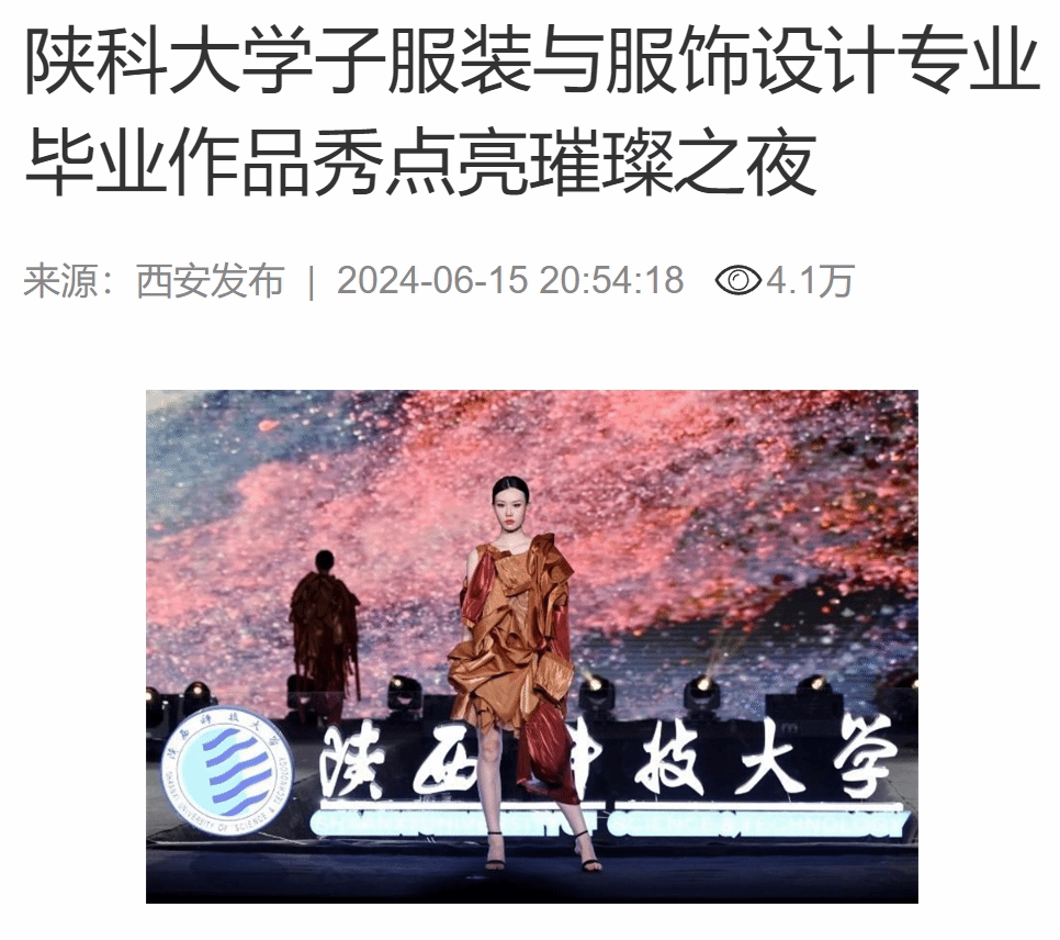 西安發(fā)布:陜科大學(xué)子服裝與服飾設(shè)計(jì)專(zhuān)業(yè)畢業(yè)作品秀點(diǎn)亮璀璨之夜
