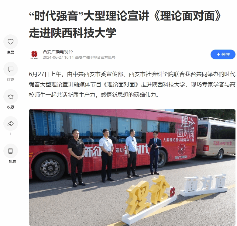 西安廣播電視臺(tái)官方微博:“時(shí)代強(qiáng)音”大型理論宣講《理論面對(duì)面》走進(jìn)陜西科技大學(xué)