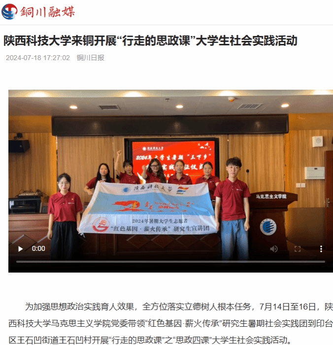 銅川日報(bào):陜西科技大學(xué)來銅開展“行走的思政課”大學(xué)生社會(huì)實(shí)踐活動(dòng)