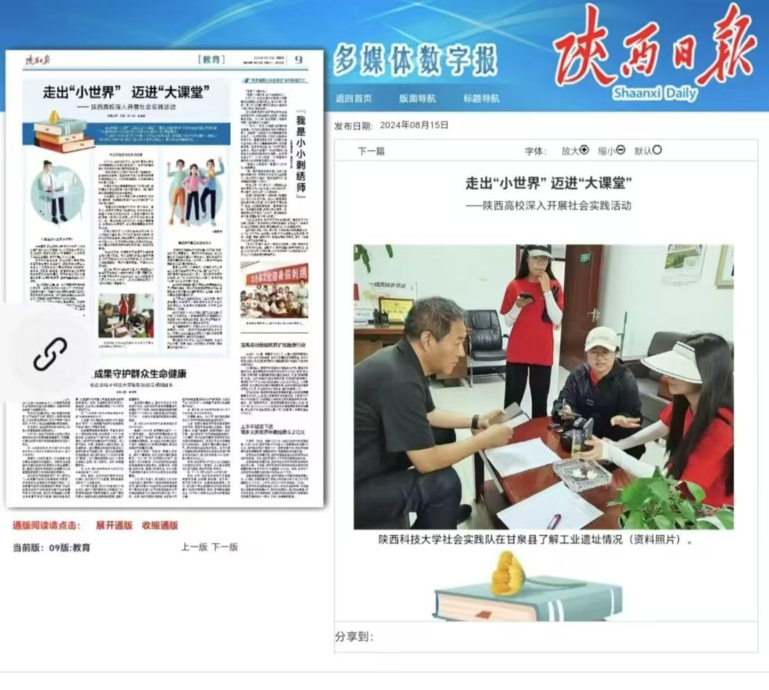 近日,《陜西日報》報道我校深入開展社會實踐活動走出“小世界” 邁進“大課堂”。