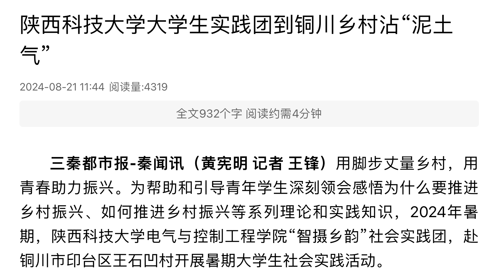 近日,《三秦都市報》《中華網》報道我校大學生實踐團到銅川鄉(xiāng)村沾“泥土氣”。