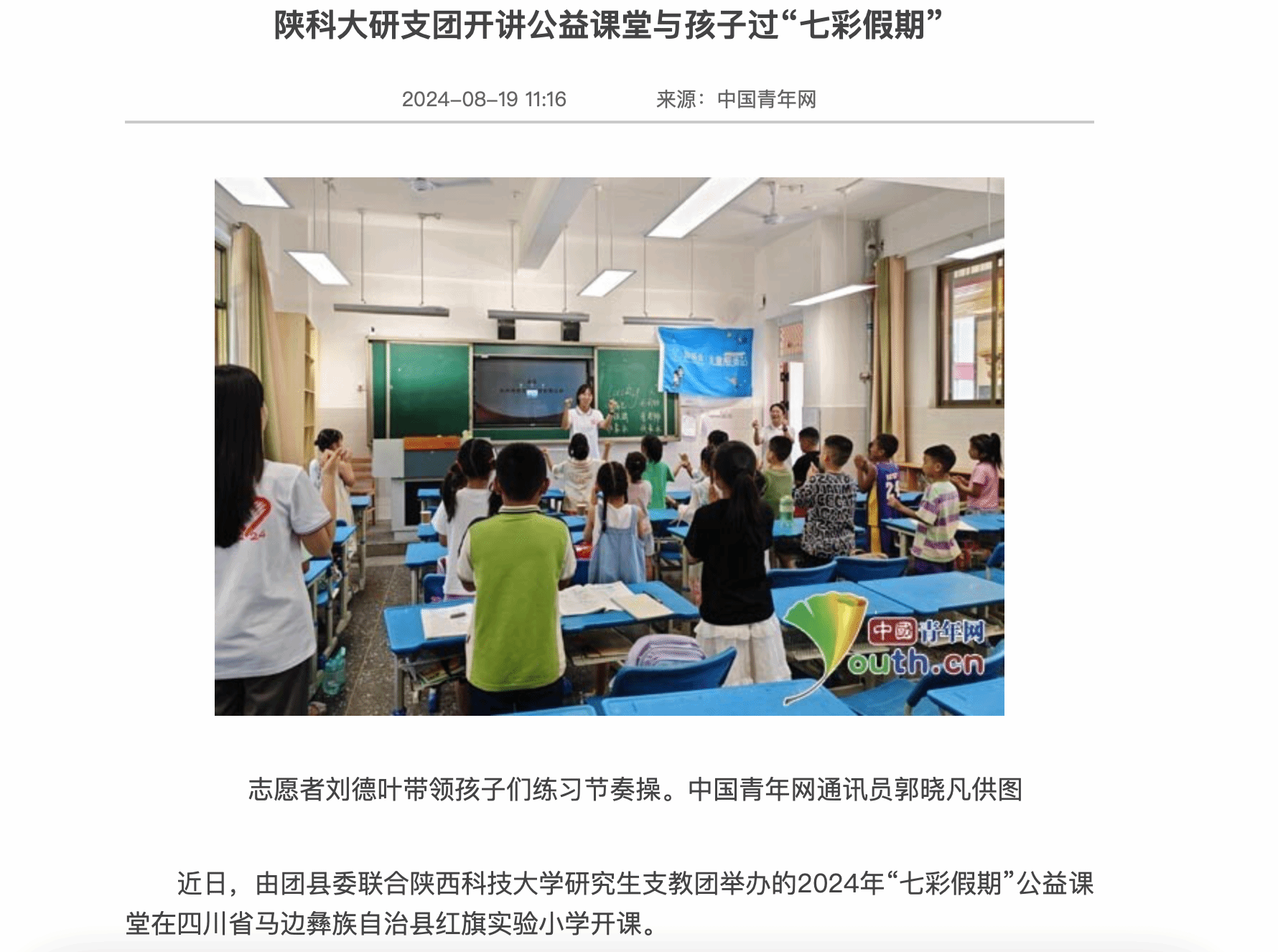 《中國青年網(wǎng)》:陜科大研支團(tuán)開講公益課堂與孩子過“七彩假期”