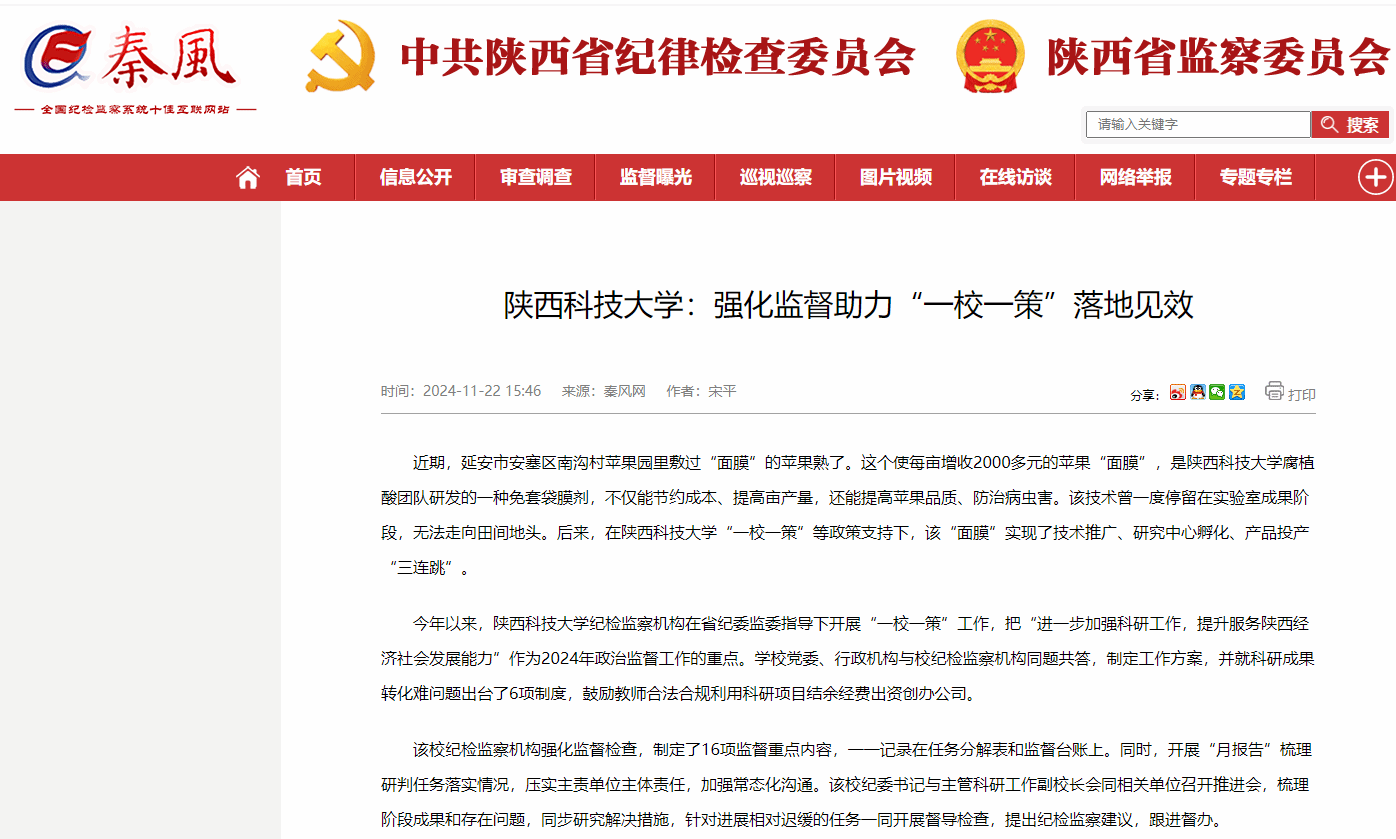 近日,秦風(fēng)網(wǎng)報(bào)道我校紀(jì)委“一校一策”工作。