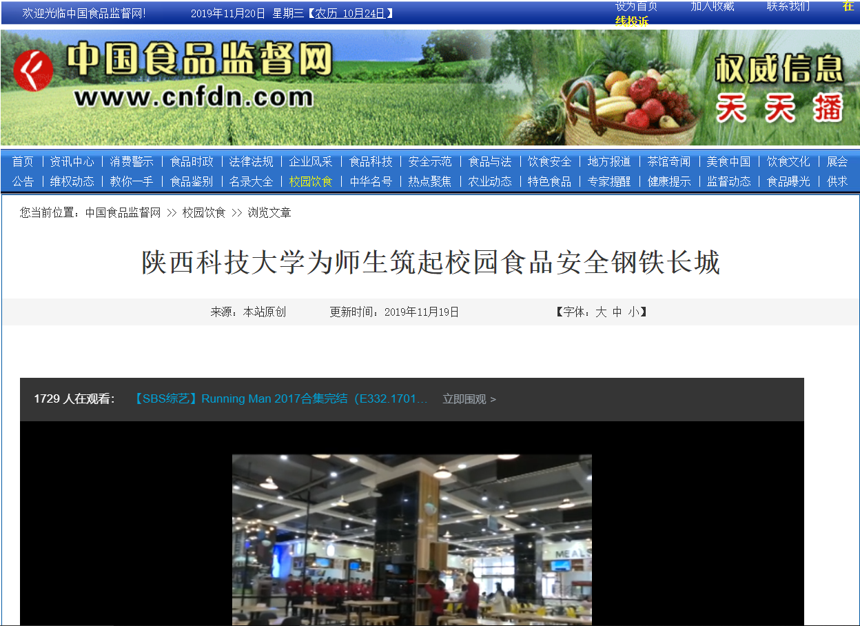 中國食品監(jiān)督網(wǎng):陜西科技大學為師生筑起校園食品安全鋼鐵長城