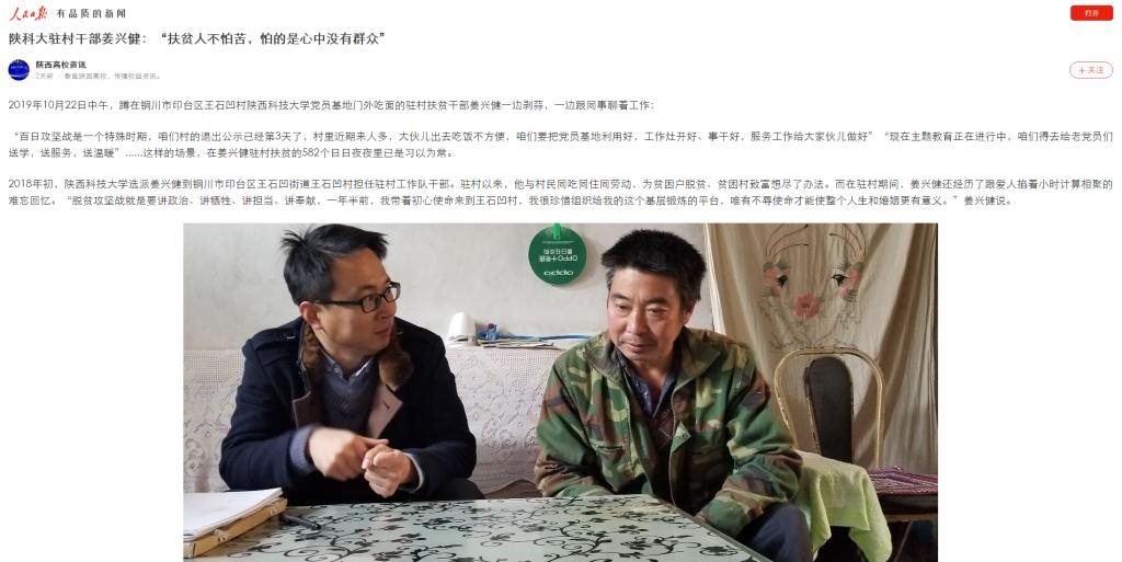 人民日?qǐng)?bào)App:陜科大駐村干部姜興健:“扶貧人不怕苦,怕的是心中沒(méi)有群眾”