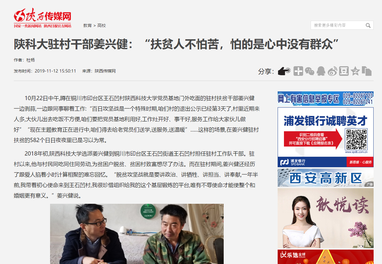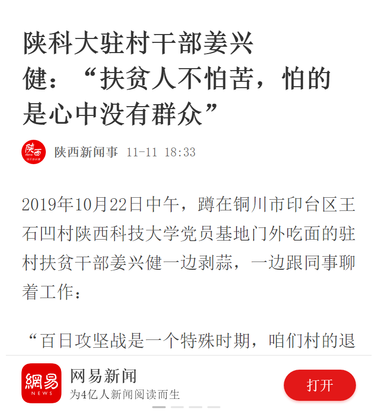 網(wǎng)易新聞:陜科大駐村干部姜興?。骸胺鲐毴瞬慌驴啵碌氖切闹袥](méi)有群眾”