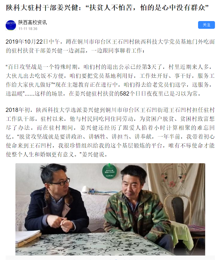 學(xué)習(xí)強(qiáng)國(guó)App:陜科大駐村干部姜興健:“扶貧人不怕苦,怕的是心中沒(méi)有群眾”