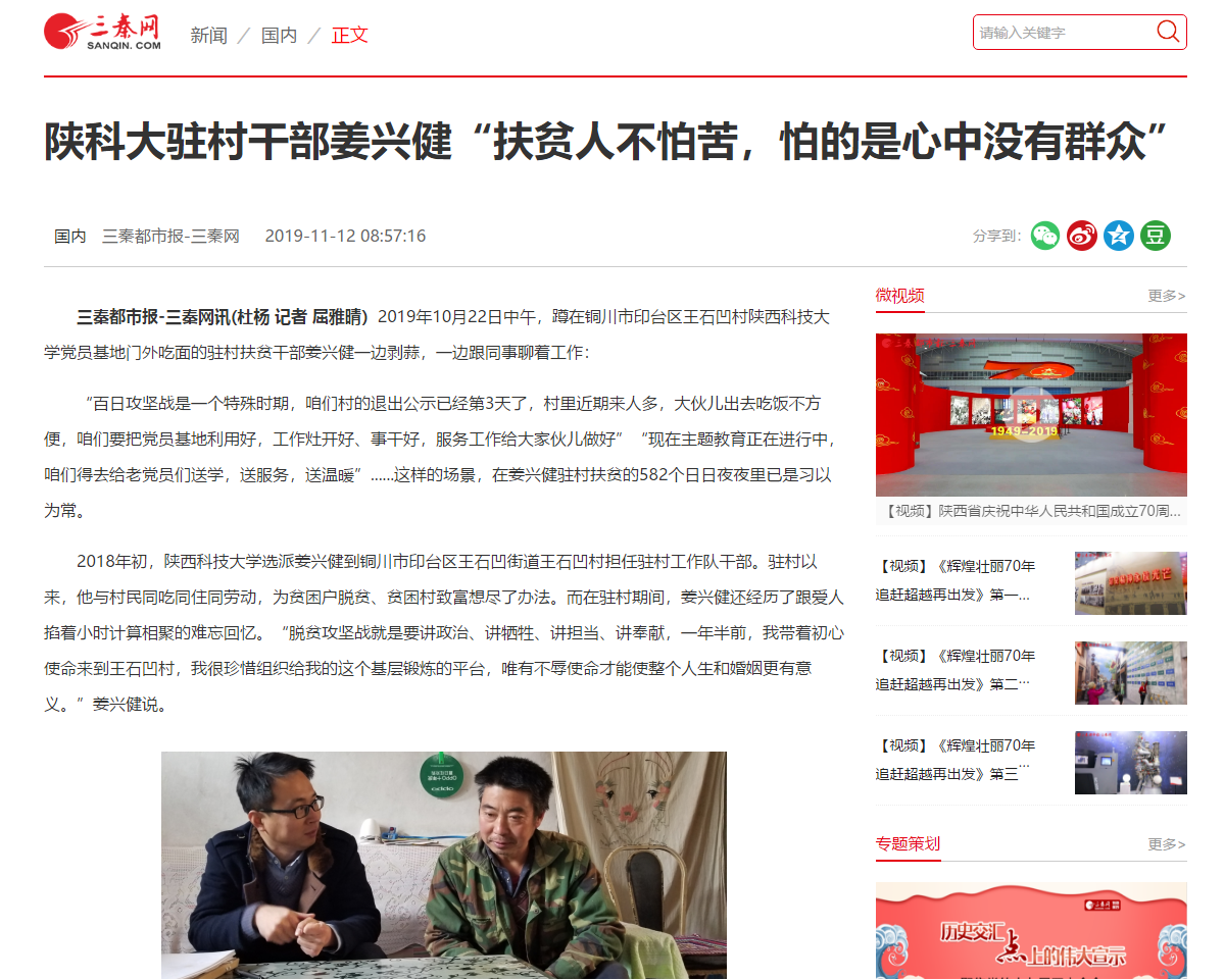 三秦網(wǎng):陜科大駐村干部姜興?。骸胺鲐毴瞬慌驴?,怕的是心中沒(méi)有群眾”