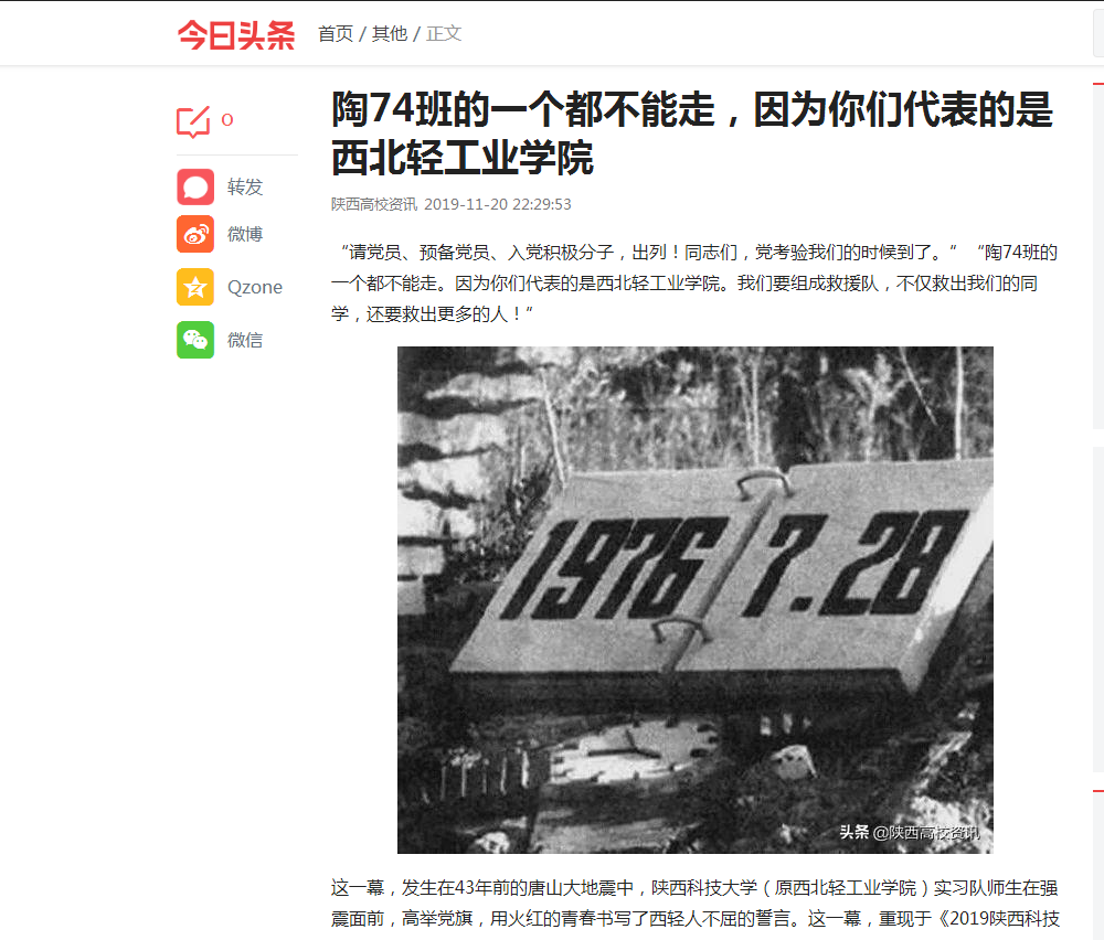 今日頭條APP報道:陶74班的一個都不能走, 因?yàn)槟銈兇淼氖俏鞅陛p工業(yè)學(xué)院!