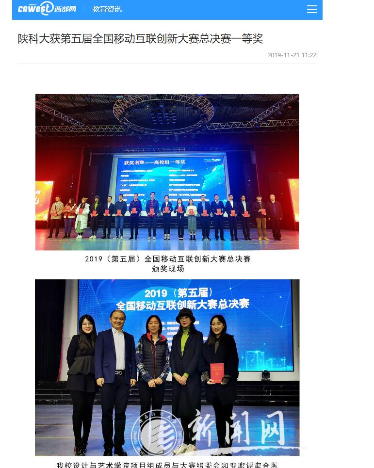 西部網(wǎng)報(bào)道:陜科大獲第五屆全國(guó)移動(dòng)互聯(lián)創(chuàng)新大賽總決賽一等獎(jiǎng)
