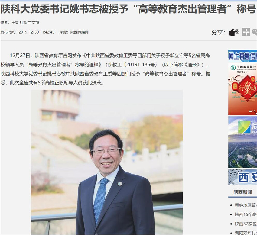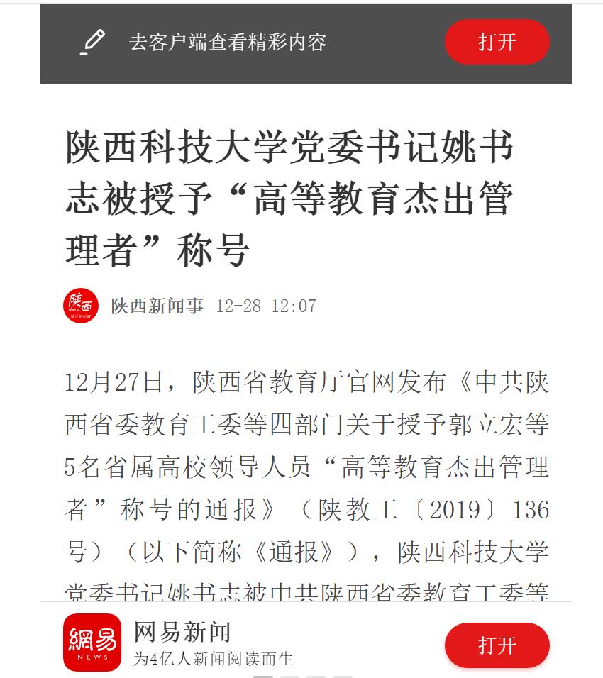 網(wǎng)易新聞APP:陜西科技大學(xué)黨委書記姚書志被授予“高等教育杰出管理者”稱號