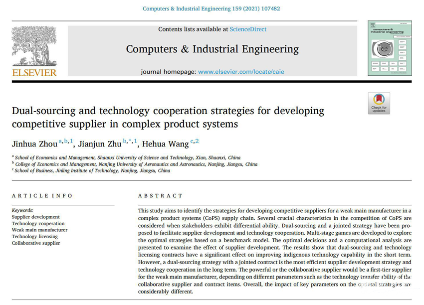“Dual-Sourcing and Technology Cooperation Strategies for Developing Competitive Supplier in Complex Product Systems”以我國復(fù)雜產(chǎn)品系統(tǒng)(CoPS)供應(yīng)鏈為研究背景,基于其核心技術(shù)發(fā)展的緊迫需求,研究我國復(fù)雜產(chǎn)品供應(yīng)鏈主制造商的競(jìng)爭(zhēng)性供應(yīng)商培育策略。在考慮復(fù)雜產(chǎn)品系統(tǒng)供應(yīng)鏈利益相關(guān)者能力差距時(shí),依據(jù)競(jìng)爭(zhēng)關(guān)鍵特征,提出了雙重采購策略和聯(lián)合戰(zhàn)略,旨在實(shí)現(xiàn)國內(nèi)供應(yīng)商培育。在基準(zhǔn)模型的基礎(chǔ)上,建立了多階段動(dòng)態(tài)博弈模型,運(yùn)用算例進(jìn)一步分析了供應(yīng)商培育策略的有效性。研究表明,雙源采購策略和技術(shù)授權(quán)策略在短期內(nèi)對(duì)提高我國復(fù)雜產(chǎn)品供應(yīng)鏈的技術(shù)能力有顯著影響,但雙源采購策略輔以聯(lián)合契約是長(zhǎng)期內(nèi)實(shí)現(xiàn)供應(yīng)商培育和技術(shù)合作的有效策略。當(dāng)主制造商與供應(yīng)商建立技術(shù)合作關(guān)系時(shí),國內(nèi)供應(yīng)商或者國際強(qiáng)勢(shì)供應(yīng)商是否作為一級(jí)供應(yīng)商,主要取決于主制造商的技術(shù)能力及合作策略設(shè)置。研究對(duì)我國復(fù)雜產(chǎn)品供應(yīng)鏈國產(chǎn)化替代率及核心技術(shù)能力提升具有重要的理論意義。