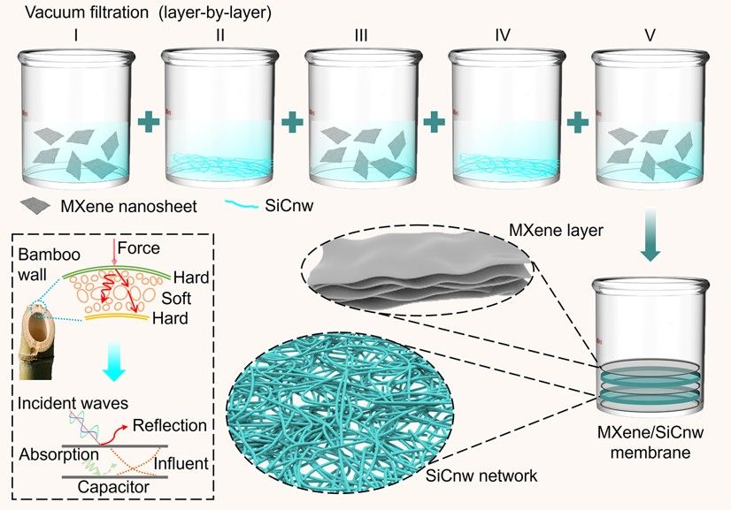 圖1 MXene/SiCnw復(fù)合薄膜的設(shè)計和制備示意圖