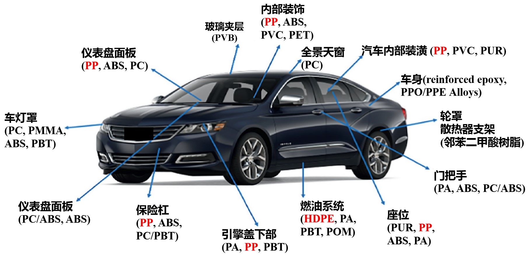近年來,中國汽車工業(yè)快速發(fā)展,整車出口連續(xù)多年呈增長態(tài)勢,其中2023年全年燃油和新能源汽車分別出口370.7萬輛和120.3萬輛。車用塑料使用量占整車質(zhì)量的10%–15%,聚丙烯、高密度聚乙烯、聚丙乙烯等石油基聚合物(塑料制品)在汽車內(nèi)外裝飾、機(jī)械構(gòu)件上已被廣泛使用。為實現(xiàn)2030年碳排放減少55%的目標(biāo),歐盟等國家和地區(qū)開始試運(yùn)行碳邊界調(diào)整機(jī)制,對石油基聚合物(塑料制品)等征收碳邊境調(diào)節(jié)稅(簡稱碳稅),這將對中國汽車整車及塑料制品的出口產(chǎn)生巨大的負(fù)面影響。