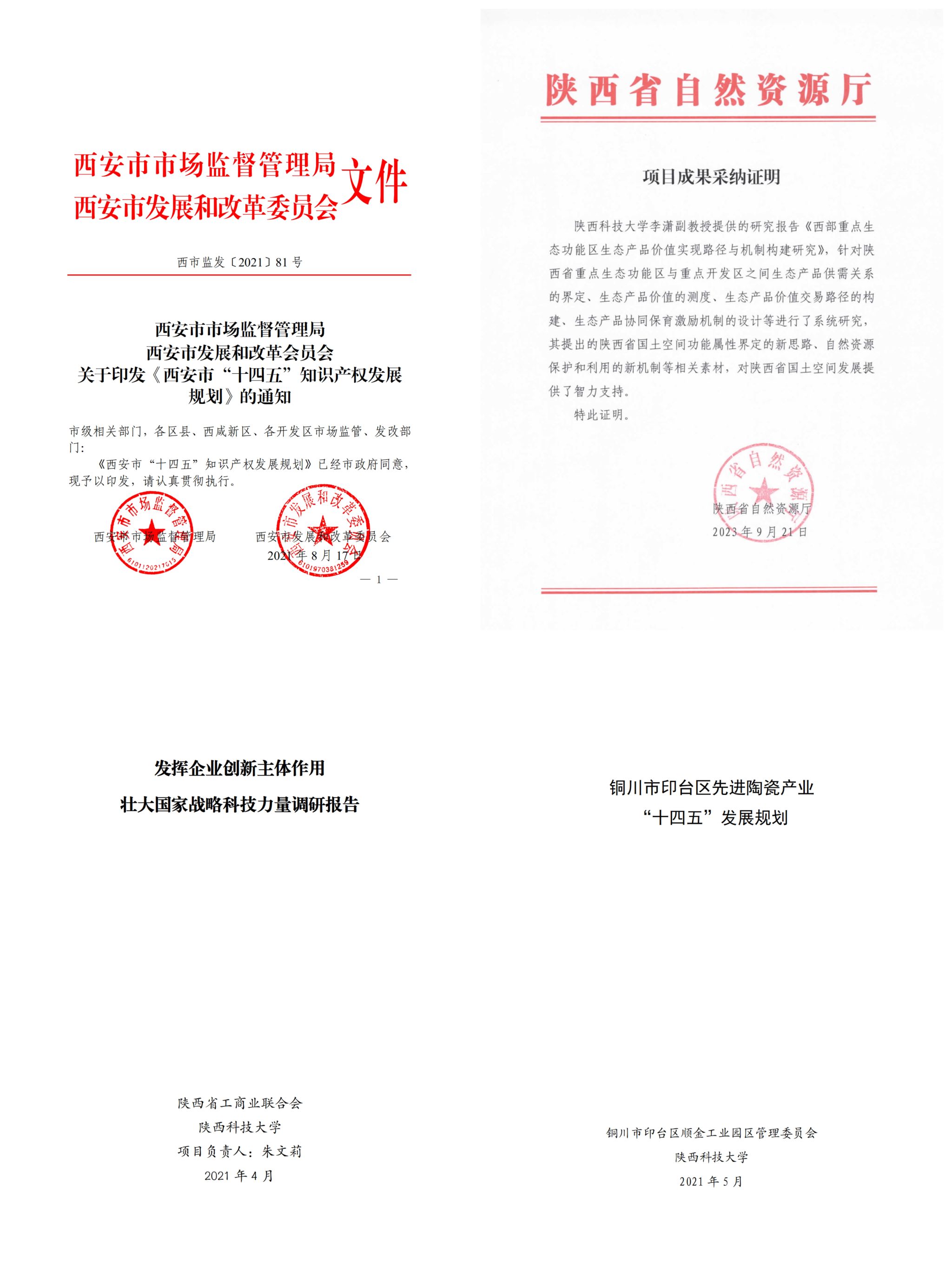 2024年學(xué)院獲批“數(shù)字經(jīng)濟(jì)”本科專業(yè)、“數(shù)字經(jīng)濟(jì)”“知識產(chǎn)權(quán)”專業(yè)碩士學(xué)位授權(quán)點;2022年以來形成了“傳統(tǒng)產(chǎn)業(yè)生態(tài)化發(fā)展研究中心”“創(chuàng)新發(fā)展與城市治理研究中心”“科技金融研究中心”等科研團(tuán)隊,為學(xué)院開展陜西創(chuàng)新發(fā)展急需的“數(shù)字經(jīng)濟(jì)”“知識產(chǎn)權(quán)”等方面的高級人才的培養(yǎng)提供平臺。學(xué)院響應(yīng)國家戰(zhàn)略和地方發(fā)展需求,結(jié)合學(xué)校輕工特色和知識產(chǎn)權(quán)轉(zhuǎn)化優(yōu)勢,凝練出傳統(tǒng)產(chǎn)業(yè)生態(tài)化和數(shù)字化轉(zhuǎn)型、技術(shù)創(chuàng)新與知識產(chǎn)權(quán)運營管理、生態(tài)環(huán)境治理與綠色生產(chǎn)、“一帶一路”經(jīng)貿(mào)合作等新興研究領(lǐng)域。承接了“西安市技術(shù)產(chǎn)權(quán)交易項目評估體系研究”“‘一帶一路’國際院士合作基地建設(shè)方案編制”“數(shù)字時代技術(shù)創(chuàng)新對資源型產(chǎn)業(yè)的影響研究”等橫向科研項目;制定的“郵政快遞企業(yè)安全生產(chǎn)管理規(guī)范”成為陜西省地方標(biāo)準(zhǔn);編撰完成了“西安市‘十四五’知識產(chǎn)權(quán)發(fā)展規(guī)劃”“西安市高新區(qū)知識產(chǎn)權(quán)服務(wù)標(biāo)準(zhǔn)化建設(shè)與規(guī)劃”“安康市毛絨玩具文創(chuàng)產(chǎn)業(yè)發(fā)展規(guī)劃”等政府和行業(yè)協(xié)會委托的發(fā)展規(guī)劃;提交的“關(guān)于加快推進(jìn)陜西食品產(chǎn)業(yè)高質(zhì)量發(fā)展研究報告”“市場主體要為共同富裕奠定充足的物質(zhì)與精神基礎(chǔ)”等5份研究報告先后被省級領(lǐng)導(dǎo)批示或被教育部等省級部門采納。