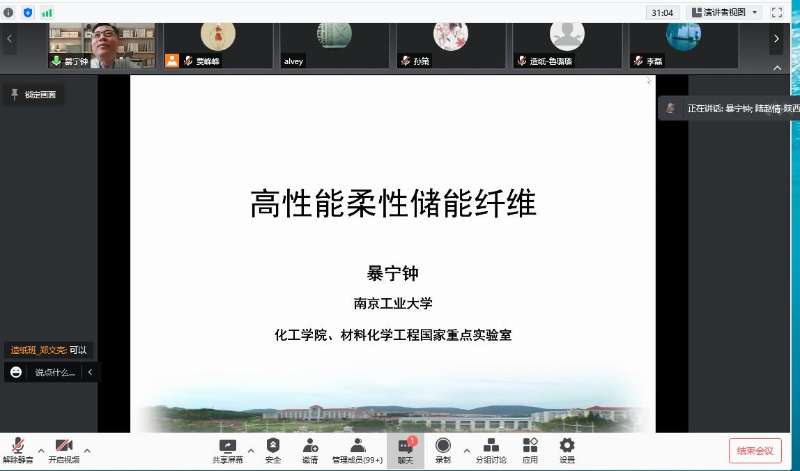 1月3日下午,受我校輕工科學(xué)與工程學(xué)院、科技處及前沿院邀請,南京工業(yè)大學(xué)教授暴寧鐘做客我?!扒把乜茖W(xué)報告”,作了題為“高性能柔性儲能纖維”的線上學(xué)術(shù)報告。輕工學(xué)院部分教師及研究生聆聽了本次報告。報告由我校研究生院院長陸趙情主持。