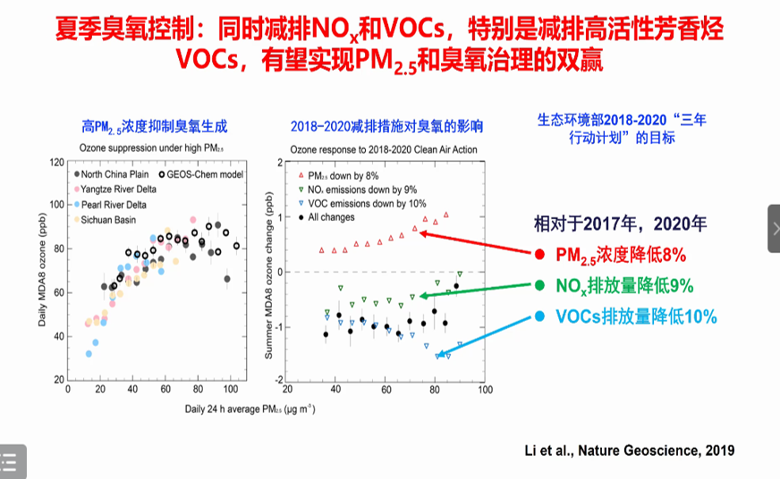 臭氧作為一種主要空氣污染物,會(huì)危害人體健康及陸地生態(tài)系統(tǒng),中國(guó)正面臨日益嚴(yán)重的臭氧污染問(wèn)題。廖宏教授指出,在我國(guó)城市地區(qū)夏季臭氧經(jīng)常成為首要大氣污染物,研究臭氧污染的成因?qū)τ谥贫ㄓ行У臏p排策略非常重要。報(bào)告從化學(xué)機(jī)制和氣象條件兩個(gè)方面,詳細(xì)解析了近年來(lái)導(dǎo)致我國(guó)臭氧濃度上升的原因。廖宏教授強(qiáng)調(diào),在當(dāng)前嚴(yán)峻的大氣復(fù)合污染形勢(shì)下,需要更加有力的措施去控制NOx和VOCs的排放,特別是減排能同時(shí)形成臭氧和二次有機(jī)氣溶膠的高活性芳香烴VOCs,才能夠更有效地實(shí)現(xiàn)霾和臭氧治理的雙贏。