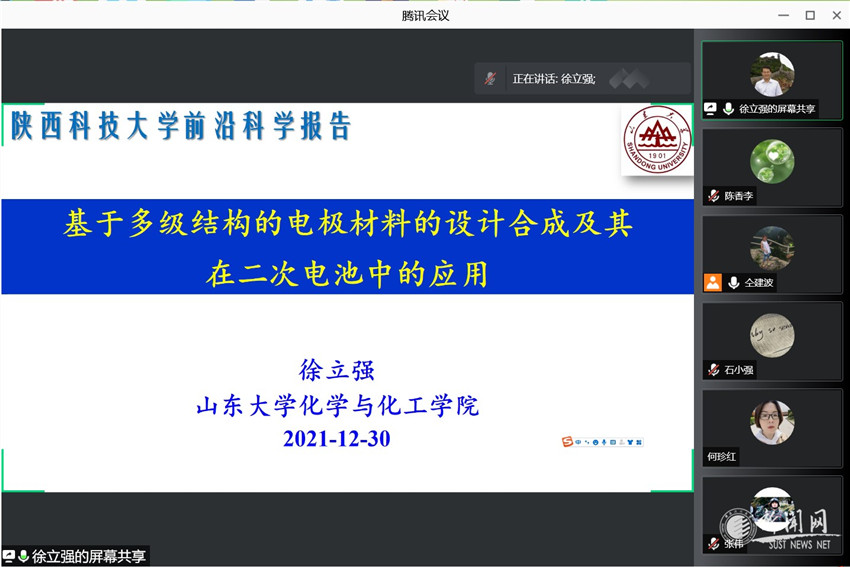 12月30日上午,應(yīng)我??萍继?、前沿院及化學(xué)與化工學(xué)院邀請,山東大學(xué)徐立強教授做客我?!扒把乜茖W(xué)報告”,作了題為“基于多級結(jié)構(gòu)材料的設(shè)計合成及其在二次電池中的應(yīng)用”的報告。報告會由化工學(xué)院副院長仝建波主持,學(xué)院相關(guān)專業(yè)教師、研究生聆聽了此次報告會。