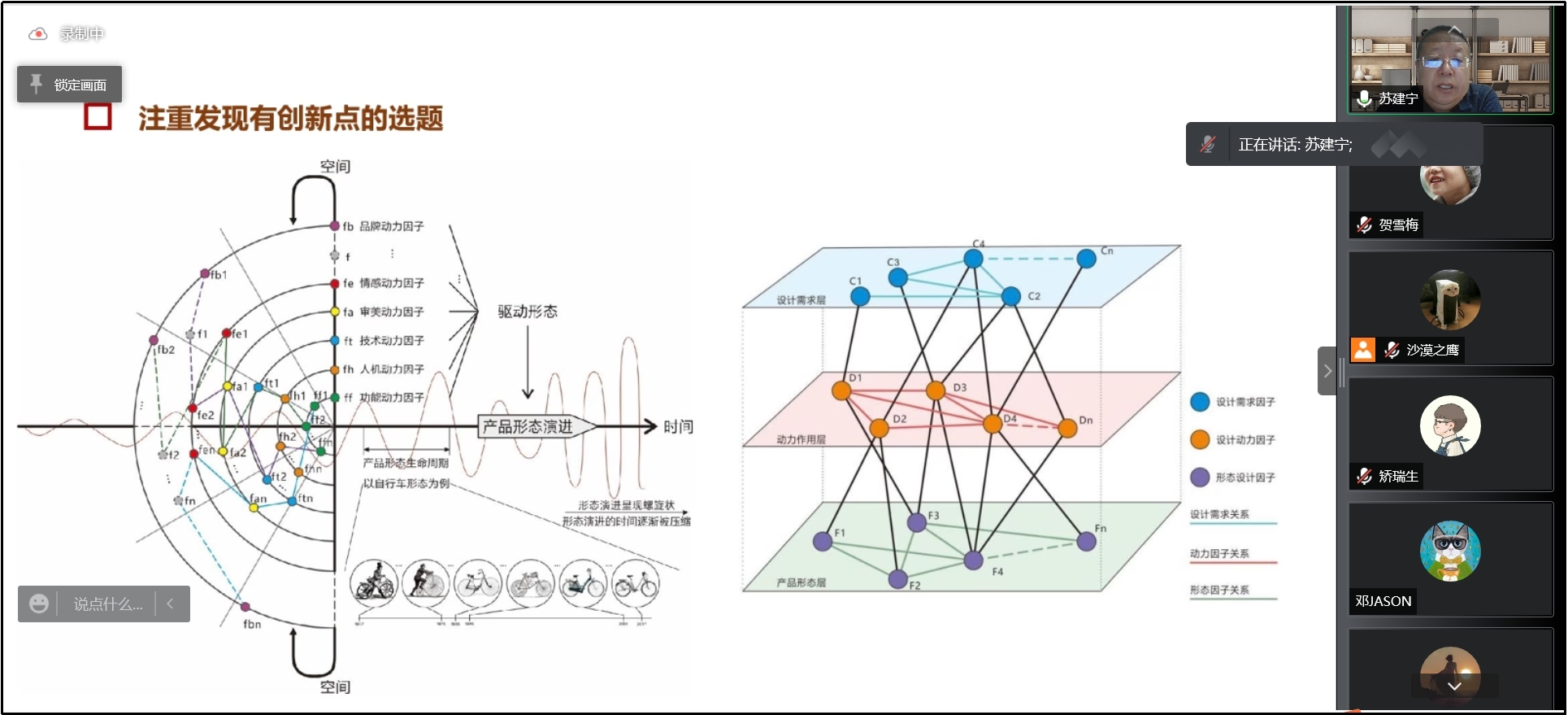 蘇建寧教授以個(gè)人申報(bào)國家自然基金經(jīng)歷為起點(diǎn),從基金工作的戰(zhàn)略定位、資助導(dǎo)向、以及如何研究等問題點(diǎn)入手,深度解讀了研究方向、科學(xué)問題、研究方法、申報(bào)書撰寫等相關(guān)問題及關(guān)鍵要點(diǎn)。蘇教授梳理了個(gè)人多年研究成果,并闡釋了課題研究的傳承性、科學(xué)性以及創(chuàng)新性,并對產(chǎn)品感性意象協(xié)同調(diào)查系統(tǒng)、感性意象認(rèn)知差異分析、產(chǎn)品美度評價(jià)技術(shù)、用戶集群分析、感性意象解耦分析、形態(tài)分析等研究方法做了深度探討。并向大家傳授了“信心要堅(jiān)定、交流要深入、決策要正確、工作要勤奮”的基金申報(bào)二十字方針。