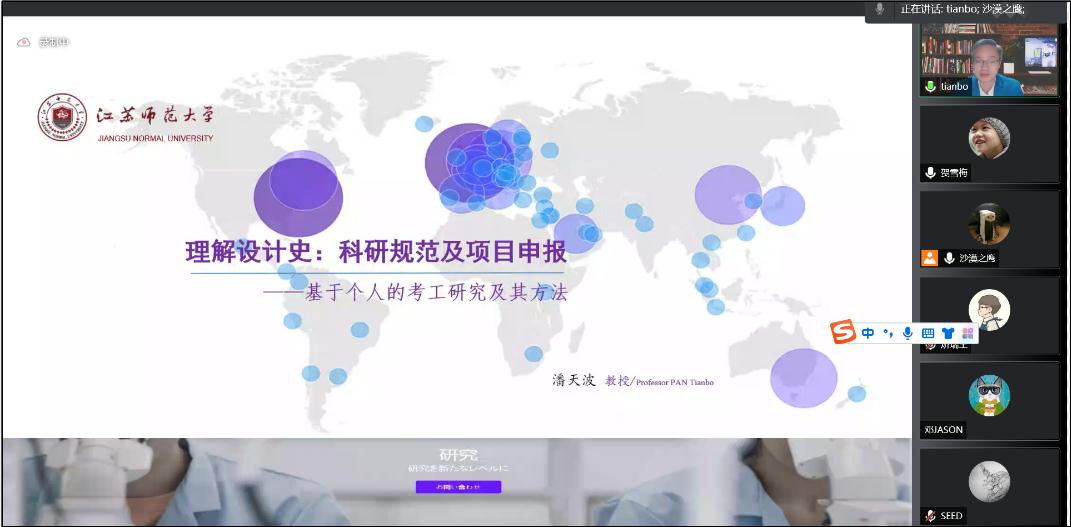12月14日晚,應(yīng)設(shè)計(jì)與藝術(shù)學(xué)院邀請(qǐng),江蘇師范大學(xué)潘天波教授云端做客我?!扒把乜茖W(xué)報(bào)告”,作了題為“設(shè)計(jì)史論科研規(guī)范及課題申報(bào)”的學(xué)術(shù)報(bào)告。報(bào)告會(huì)由設(shè)藝學(xué)院副院長(zhǎng)賀雪梅教授主持,學(xué)院全體教師及部分研究生聆聽了此次精彩分享。