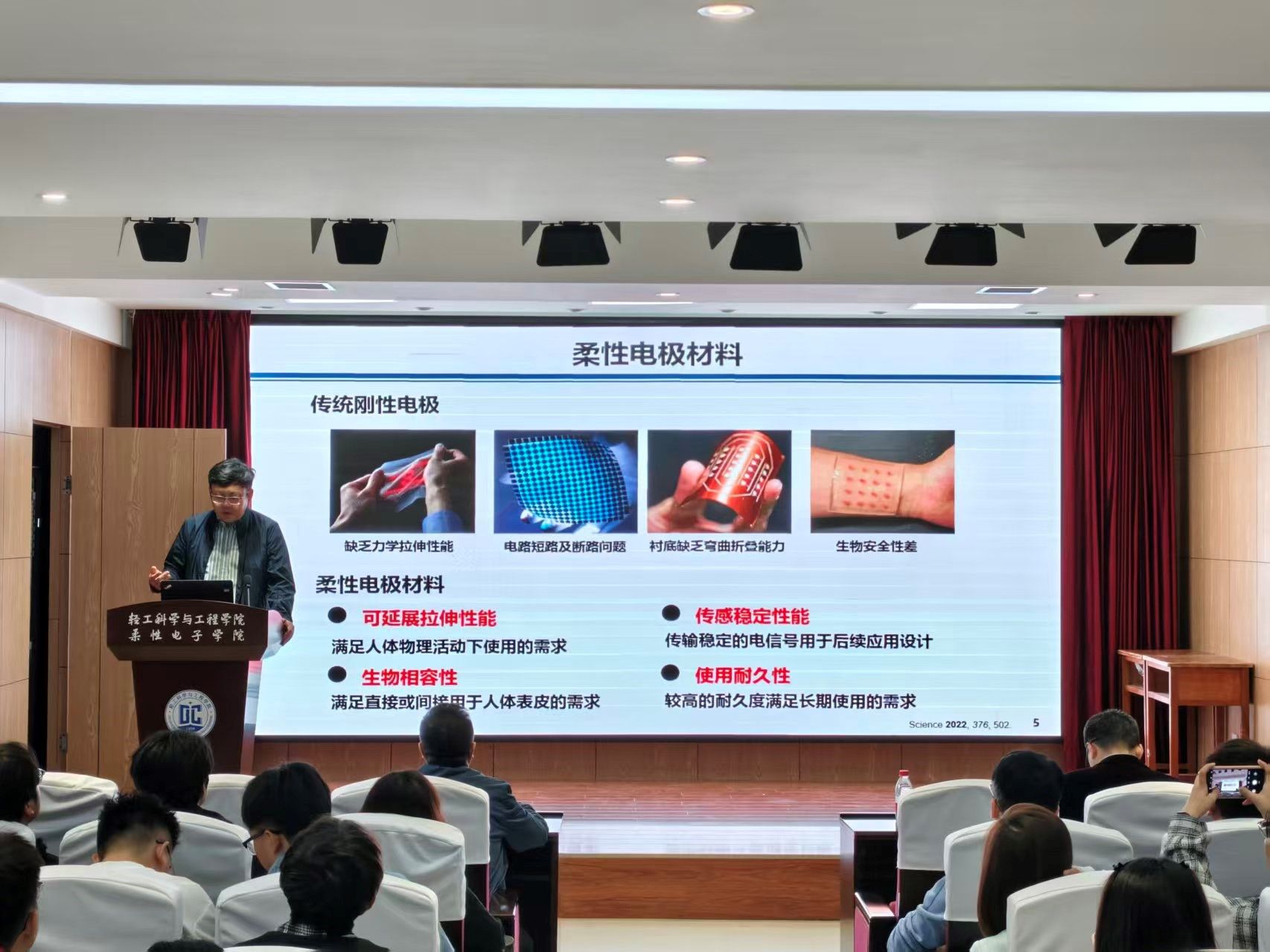 報告會上,李鵬教授結(jié)合柔性電子的相關(guān)研究背景,首先闡述了實現(xiàn)人機交互所面臨的關(guān)鍵科學(xué)問題與技術(shù)瓶頸,然后系統(tǒng)地介紹了課題組在凝膠基柔性人機交互界面電極和柔性光子動力學(xué)診療器件方面開展的一系列前沿研究工作。其中包括水凝膠傳感器在醫(yī)療檢測及人機交互系統(tǒng)中的應(yīng)用;柔性氣凝膠電極用于腦損傷及愈后癲癇的診斷;可穿戴/可植入柔性光電器件及其在骨腫瘤治療中的應(yīng)用。